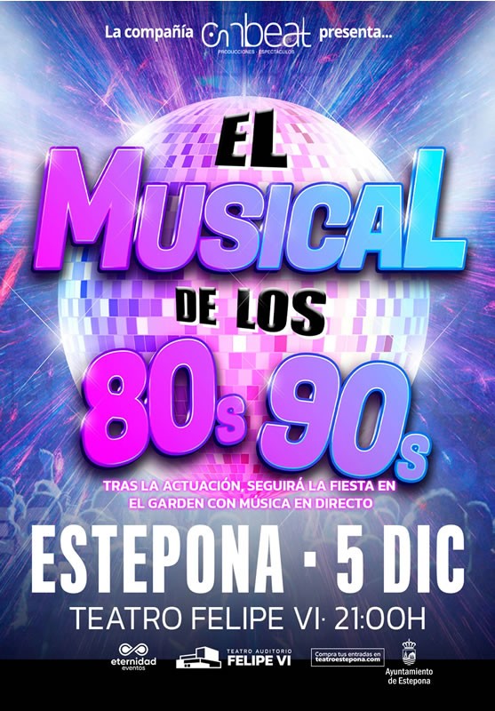 The Estepona City Council informs that the OnBeat Company will present "The Musical of the 80s and 90s" next Friday, December 5th, at 9:00 PM, in the Felipe VI Auditorium Theatre.
