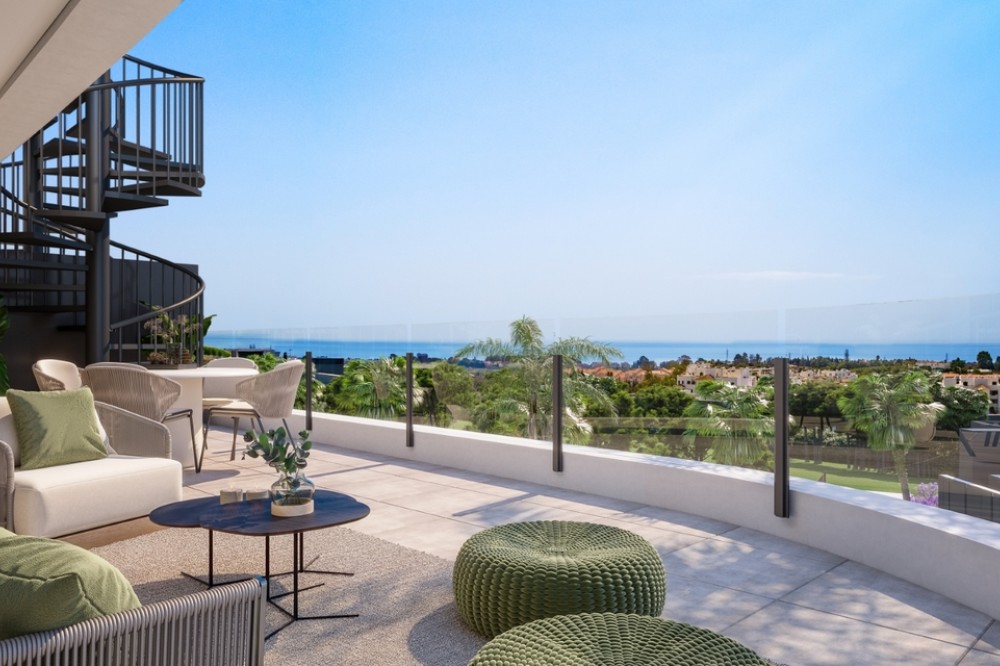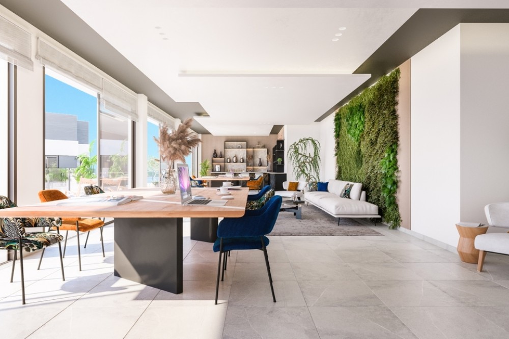 • Discover a Mediterranean oasis in Estepona, this exclusive home, designed by renowned architects, combines livability, sustainability and a unique lifestyle. This south-facing property makes the most of sunlight thanks to its large glass surfaces and large terraces. The interior distribution is carefully planned to promote social life, with an open area that includes the kitchen, living room and dining room, extending to the outside on a continuous terrace with panoramic views of the natural environment. The borders between interior and exterior are blurred, allowing you to enjoy the best design with unparalleled views. The terraces, with a solarium, integrate perfectly into the distribution, creating a space where you can relax and experience nature from every corner of your home. The private gardens on the ground floors provide the feeling of living in a villa, while enjoying all the community services. The complex has an impressive central swimming pool, surrounded by gardens, which offers an atmosphere of tranquility and privacy. Additionally, residents have access to a fully equipped gym, a spa with jacuzzi, and a multipurpose room for various activities. It offers an exclusive and complete spa where you can relax and unwind in an environment designed in detail. Direct access from the garden area encourages relaxation and enjoyment of fantastic facilities, complemented by changing rooms and toilets. With all the comforts at your fingertips and the Mediterranean Sea always on the horizon. This residential project is designed to create a unique environment, a refuge where you can enjoy the life you have always dreamed of. If you are interested, contact us to learn more details and take the first step towards your new dream home!
