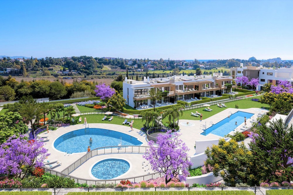 - New Development: Prices from €720,000 to €880,000. [Bedrooms: 2 - 3] [Bathrooms: 2] [Built size: 92m2 - 121m2]. New project of luxury 2 and 3 bedroom apartments and penthouses in the last plot in prestigious Atalaya, on the junction of the golden triangle Marbella – Benahavis – Estepona, in a gated exclusive community full of amenities with gym, heated pool and jacuzzis, lush gardens and yoga lake, in walking distance to facilities and within a short drive to the beach, Puerto Banús and Marbella. With penthouse and rooftop sea views, top brands and high qualities such as underfloor heating throughout, modern aerothermal heat system, fully fitted kitchen and bathrooms, extensive terraces and gardens, double orientations, elevated ground floors and underground garages. Personalization of all interior materials, flexible interior architecture, furniture packages, on-site after sales customer service, and the guarantee of one of the leading and longest established european developers, and most prestigious architect Ismael Mérida.
