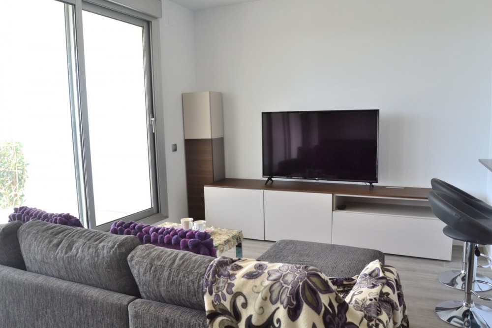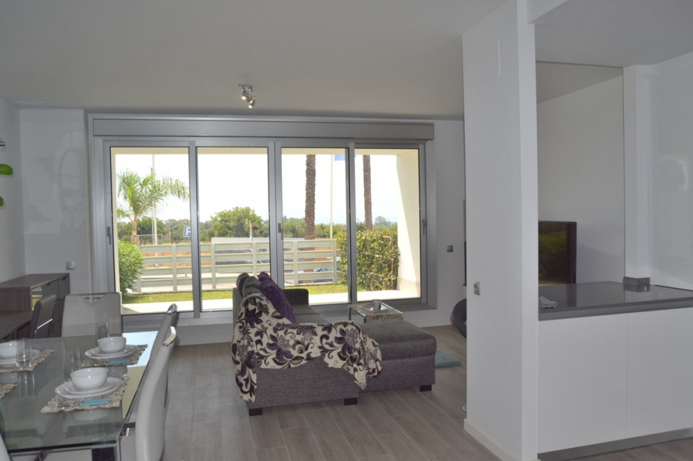 • Modern apartment located in the charming village of Cancelada in Estepona. The garden apartment consists of a bright lounge and dining area have access to a private wouth facing terrace of 18 sqm and a garden of 30 sqm. The open plan kitchen is fully equipped with top range appliances. The 2 bedrooms have en-suite bathrooms and fitted wardrobes. The complex is gated with security services and concierge and has 2 swimming pools, kids pool and play area. Few minutes walking to shops, restaurants and services and only 5 minutes by car to the beach and Los Flamingos golf course.