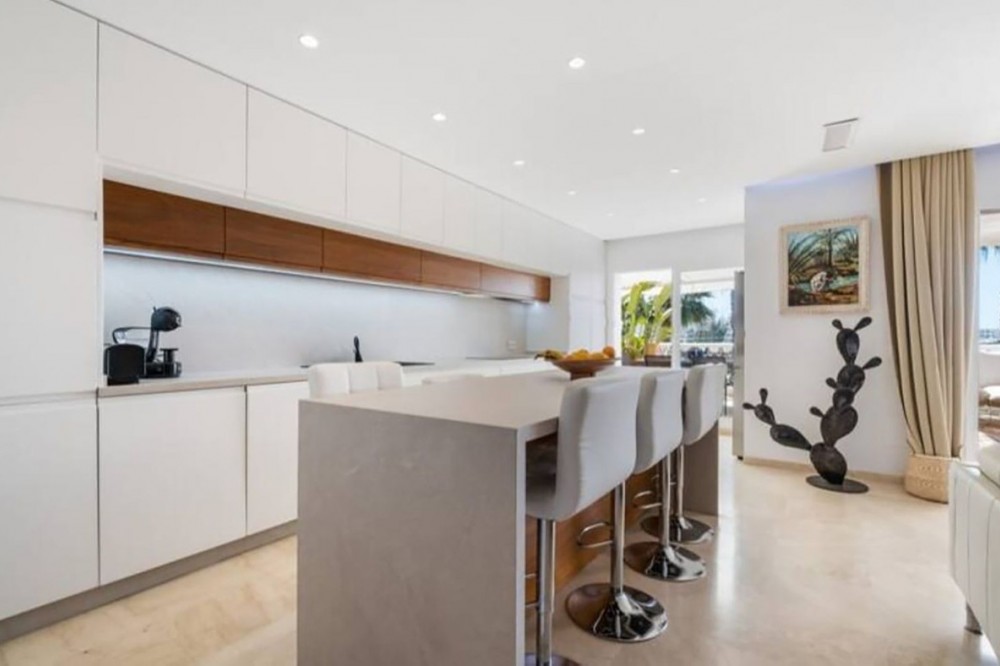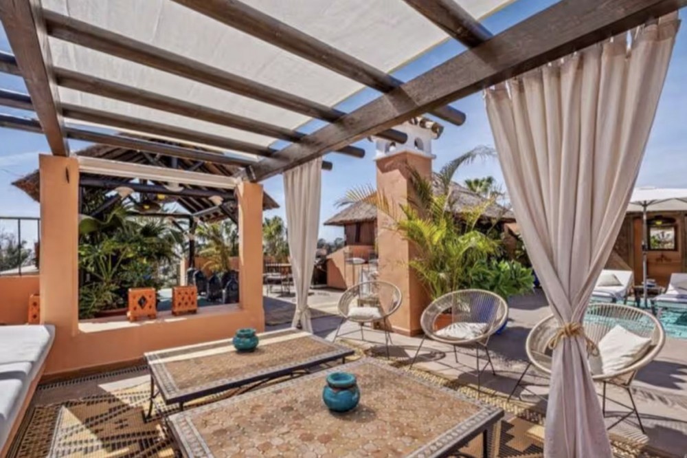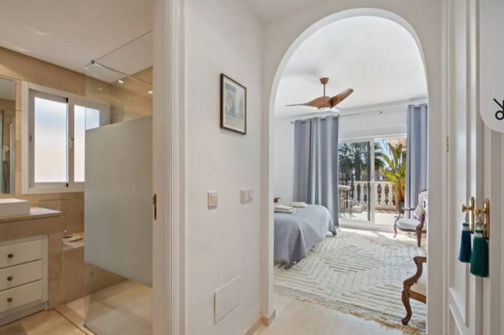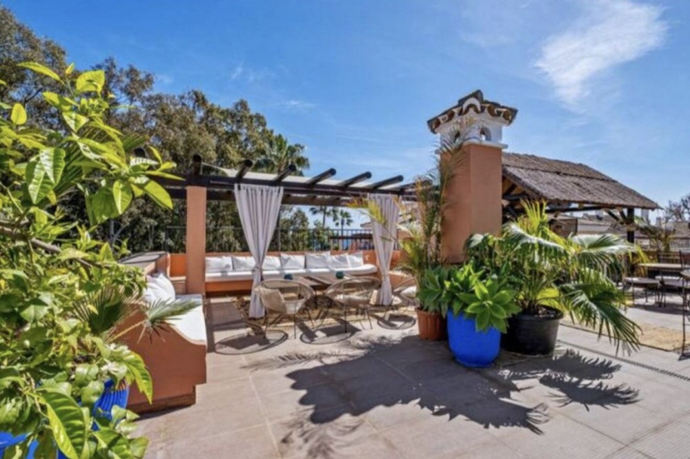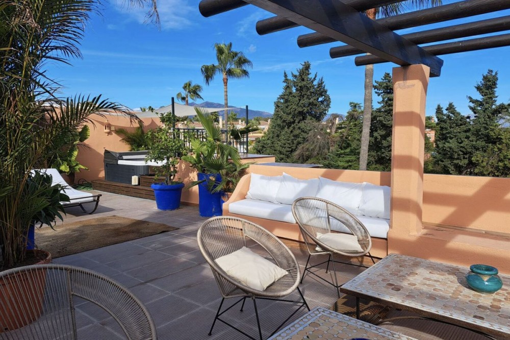 - Live just 80 meters from the beach! Stunning Penthouse with harmonious spaces and views – New Golden Mile Located in a beachfront residence on the New Golden Mile, this exceptional property enjoys a prime location: close to shops, schools, golf courses, and equidistant from the prestigious towns of Puerto Banus and Estepona. A southwest orientation offers spectacular sunsets and panoramic views of La Concha, Sierra Bermeja, and partial sea views. Renovated in 2022, this penthouse impresses with its generous spaces and high-quality features: A spacious and bright living area with fireplace and a fully equipped open kitchen. This living space opens onto a large 40 m² southwest-facing terrace with calming views over the surrounding nature and the Sierra Bermeja. A master suite with private bathroom and terrace access. Three additional bedrooms or 2 bedrooms + 1 office, all with built-in wardrobes and two en-suite bathrooms. A 145 m² solarium, offering total privacy. High-end features: quality renovation, underfloor heating in bathrooms, individual reversible hot/cold air conditioning in every room, fireplace insert, and double glazing for optimal comfort. Secure residence: complex with two large pools and beautifully landscaped gardens, ensuring absolute tranquility. Included in the price: one underground parking space. An exceptional property, perfect as a primary residence, holiday home, or profitable rental investment thanks to its strategic location and high demand on the Costa del Sol. Don’t miss this unique opportunity. Contact us to schedule a visit!