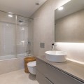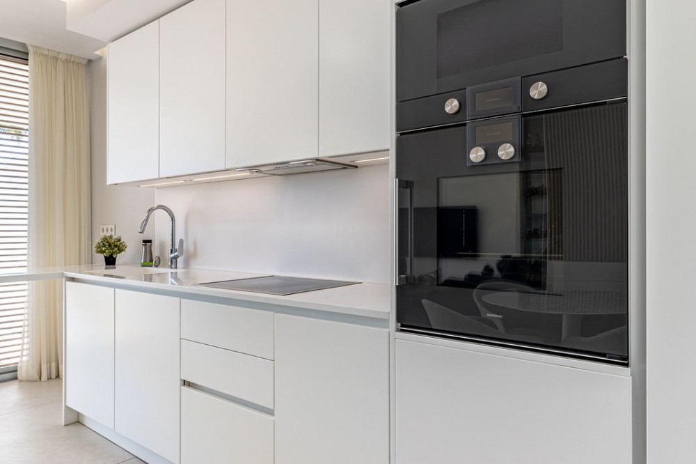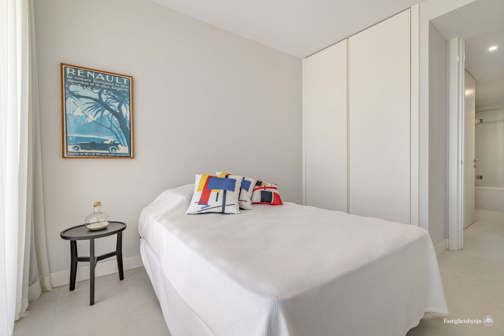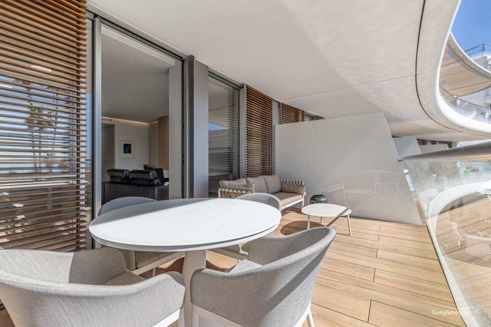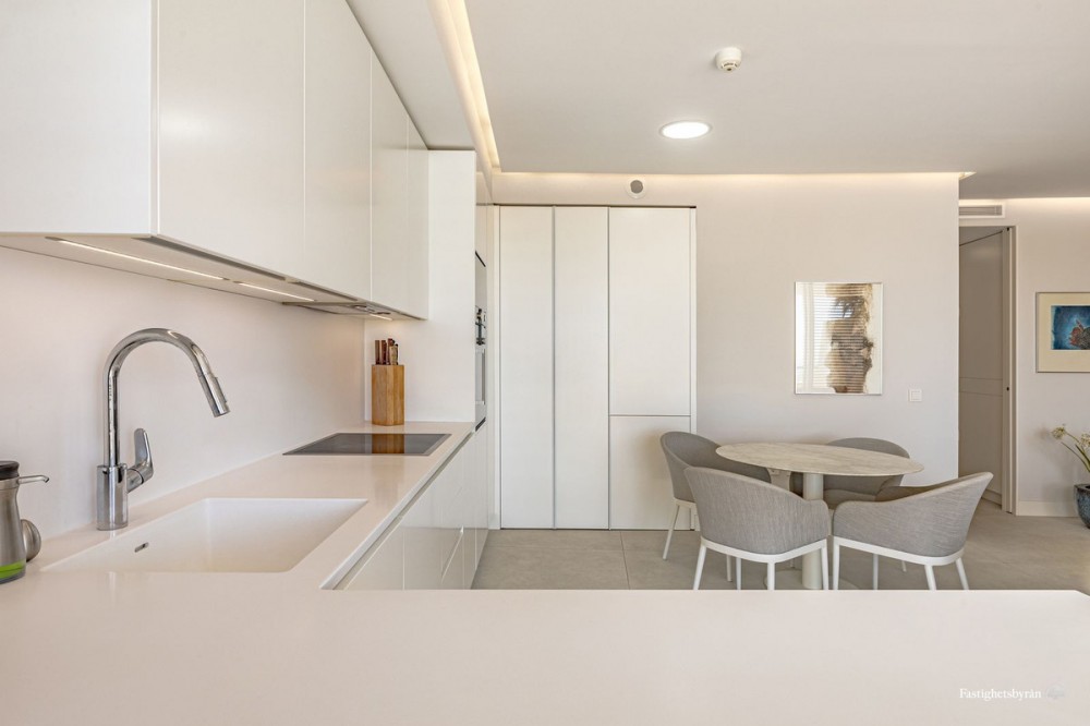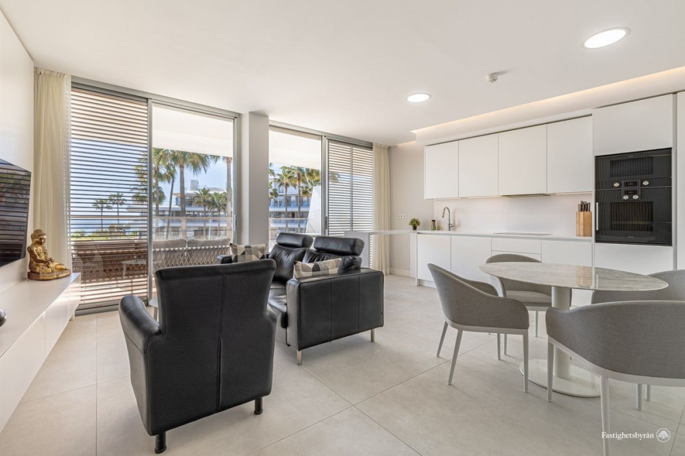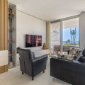 - Spectacular sea views, five minutes drive to Estepona and 15 minutes to Puerto Banus. Modern frontline beach development on the beach promenade, consisting of 68 flats. It has very well kept gardens, infinity pool, conference and meeting room, gymnasium and spa area with indoor heated pool, jacuzzi, hamman and sauna. This spectacular and luminous flat where you can enjoy the best views, has two bedrooms, 2 bathrooms with Dombracht finishes and 2 terraces, the main one with views to the garden and the sea, as well as a spacious open plan living room-kitchen with prestigious Gaggenau appliances, garage, storage room and 24h security. This luxury flat is perfect given its privileged location and the high end services it offers to become your new home. Come and see it.