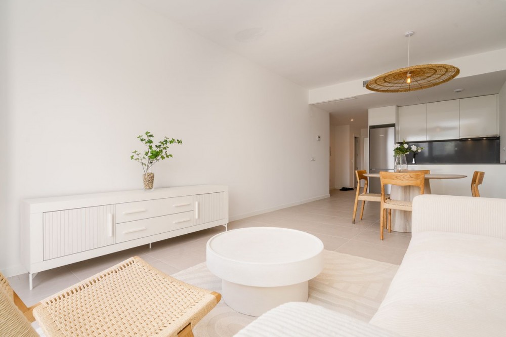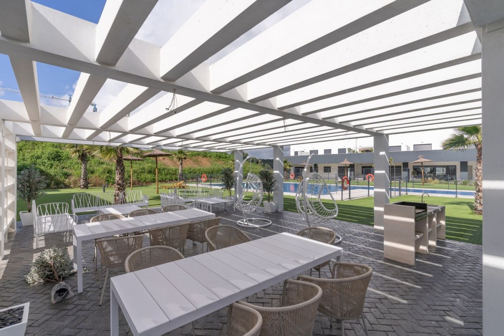 - Discover this stunning, brand-new apartment, built to the highest standards and impeccably furnished and decorated with exclusive Valentino designs. Located within the prestigious Celere Views urbanization, this property is just 300 meters from the beach and only 1 km from Estepona port, with all essential amenities within walking distance. The complex offers a range of premium features, including a fully equipped gym, beautifully landscaped gardens, a sparkling swimming pool, and a relaxing chill-out zone complete with a barbecue area and kitchen, perfect for entertaining. Situated on the 1st floor, this bright and airy apartment boasts a spacious living room with an open, fully equipped kitchen, leading to an East-facing terrace with partial sea views. The two generous double bedrooms are West-facing, offering lovely views of the garden and pool. Designed with modern, stylish finishes throughout, this apartment is the perfect combination of luxury and convenience—ready for you to move in and enjoy!