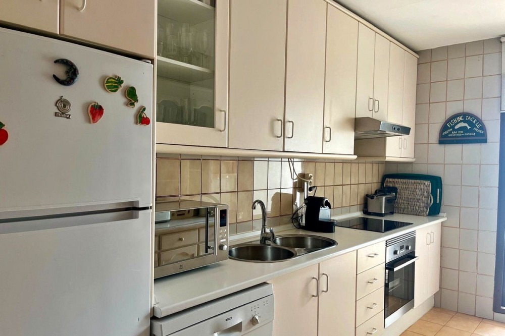 - Discover your new home right on the beachfront! This spectacular 124 m² apartment has everything you need to enjoy coastal living. With 3 spacious bedrooms and 2 bathrooms, there’s plenty of room for the whole family. The separate kitchen is perfect for preparing delicious meals, while the large living-dining area is ideal for relaxing or entertaining guests. Imagine waking up every morning to panoramic sea views from your large terrace—a space made for soaking up the sun and enjoying the sea breeze. The community also features well-maintained gardens and a refreshing swimming pool, perfect for hot days. The property includes an underground parking space and a storage room, adding extra convenience to your daily life. With direct beach access, you can enjoy long walks along the shore or practice water sports anytime you like. While the apartment is pre-owned and needs some renovation, its prime location and great potential make it a unique opportunity.