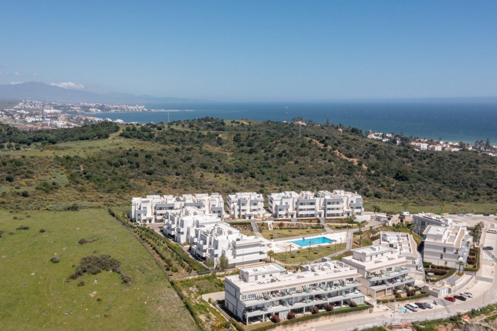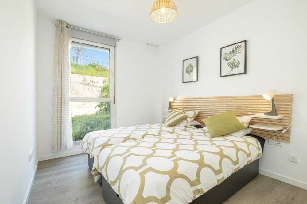 - Delightful 2-Bedroom Ground Floor Apartment on the Outskirts of Estepona. This stylish, south-west-facing apartment enjoys sunshine throughout the day and offers a perfect blend of indoor comfort and outdoor living. The open-plan layout features a spacious living area that flows seamlessly onto a generous terrace and private garden — ideal for relaxing or entertaining. Comprising two bedrooms and two bathrooms, the property is set within a luxury gated community with beautifully maintained communal areas, including a swimming pool. Additional features include an underground parking space and a private storeroom. Located within walking distance of local amenities and the beach, and just a 10-minute drive from Estepona’s charming marina and historic old town, this apartment is ideal as a holiday home or for year-round living.