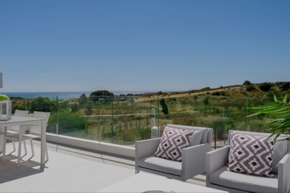 - Penthouse with Panoramic Sea & Golf Views – Estepona Discover this spectacular south-facing penthouse in an exclusive frontline golf development in Estepona, offering abundant natural light and stunning panoramic views of the sea and golf course. Ideally located just 5 minutes from Alcazaba Lagoon and close to Estepona’s new hospital, schools, restaurants, and supermarkets, this property combines luxury and convenience. The spacious interior features a bright open-plan living and dining area, a modern fully equipped kitchen, and direct access to a large private terrace—perfect for enjoying the peaceful surroundings and breathtaking views. The master bedroom includes en-suite bathroom with walk-in shower. Two additional generous bedrooms with built-in wardrobes, a stylish bathroom with double sinks and walk-in shower, and a laundry area complete the layout. Additional features include a private underground parking space and a storage room. The well-maintained development offers excellent amenities such as a large swimming pool with sea and mountain views, a fully equipped gym, and 24-hour security. This property is ideal for luxurious living or as a high-yield rental investment on the Costa del Sol.