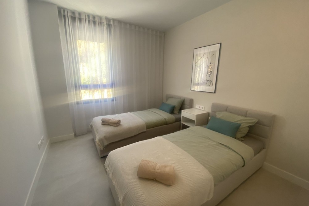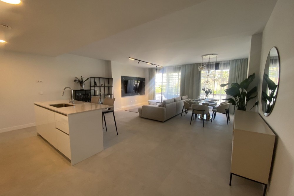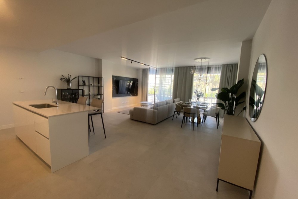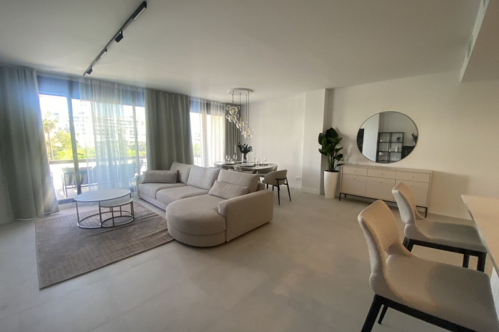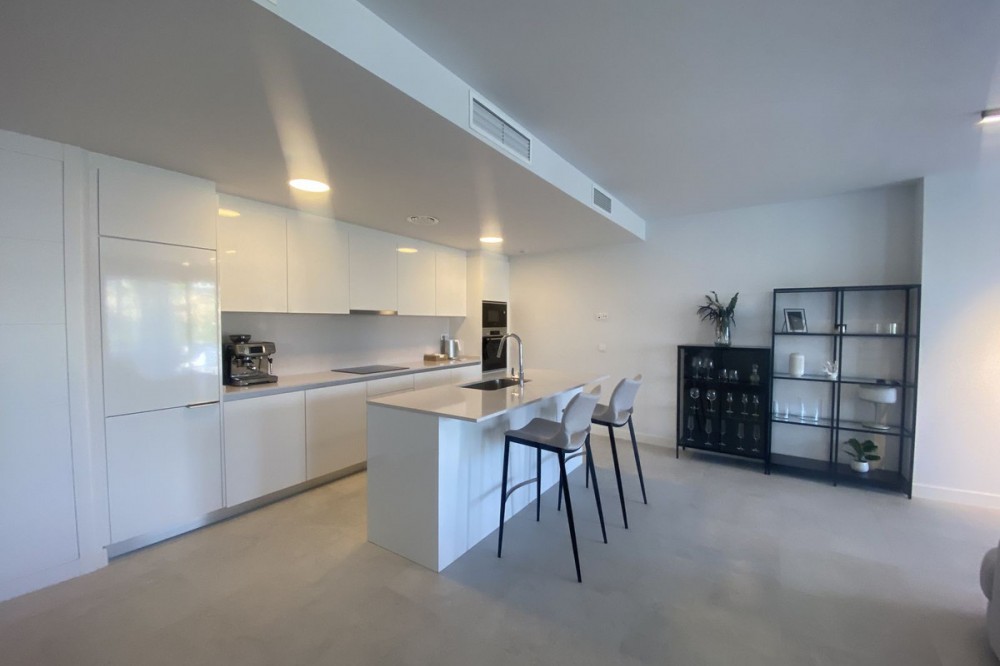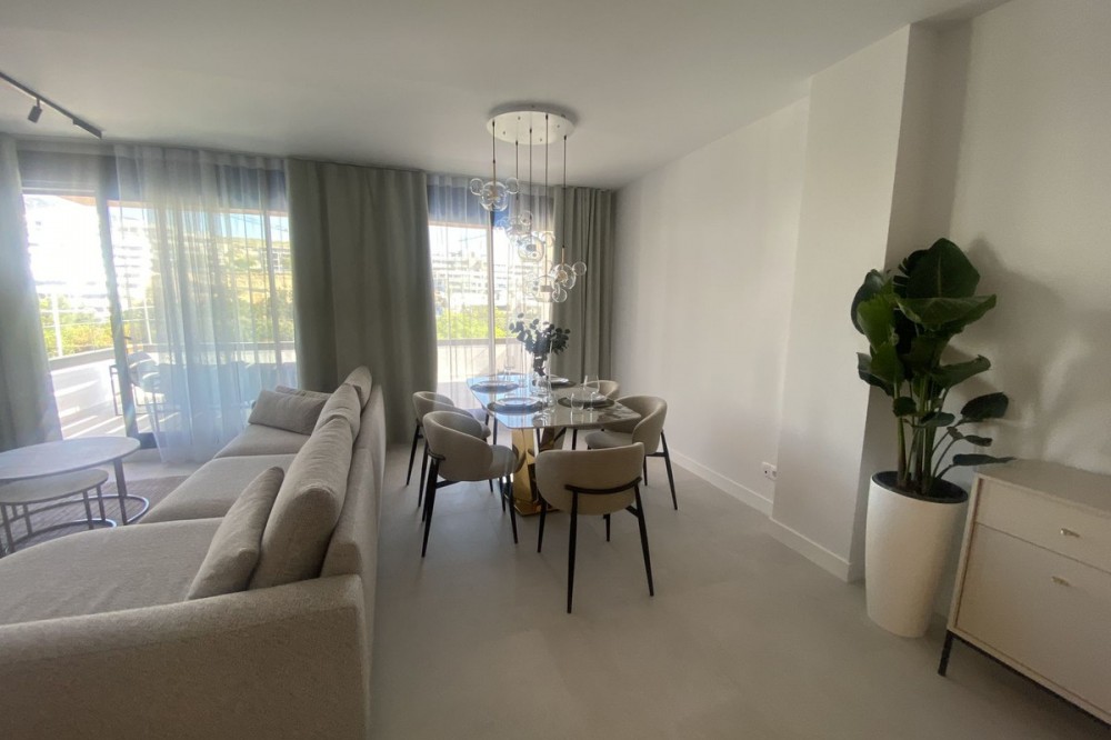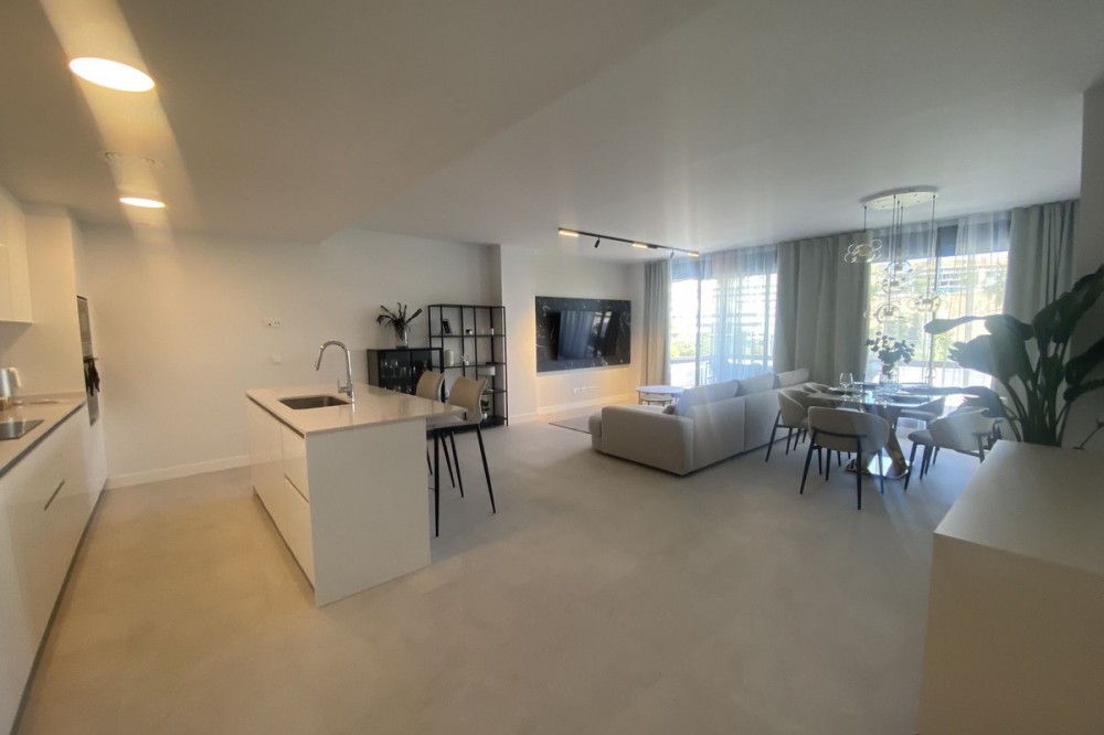 - Middle Floor Apartment, Estepona, Costa del Sol. 3 Bedrooms, 2 Bathrooms, Built 120 m², Terrace 20 m². Setting : Close To Shops, Close To Sea, Close To Schools. Orientation : East. Condition : Excellent. Pool : Communal. Climate Control : Air Conditioning. Views : Sea, Mountain, Urban. Features : Covered Terrace, Lift, Fitted Wardrobes, Near Transport, Private Terrace, Gym, Ensuite Bathroom, Access for people with reduced mobility, Double Glazing. Furniture : Fully Furnished. Kitchen : Fully Fitted. Garden : Communal. Parking : Underground.