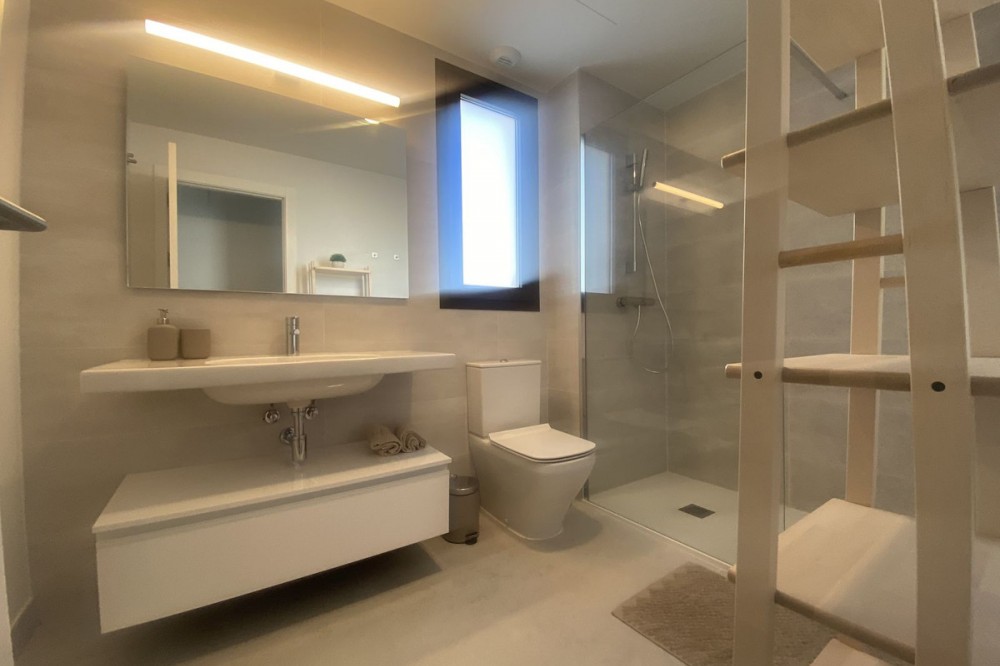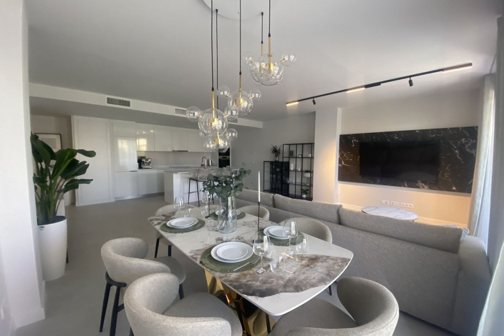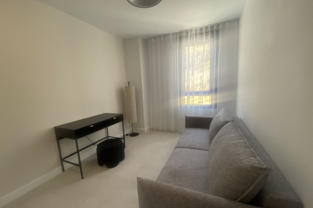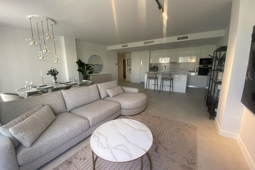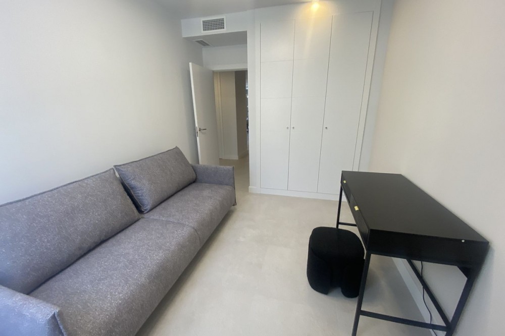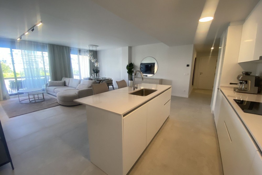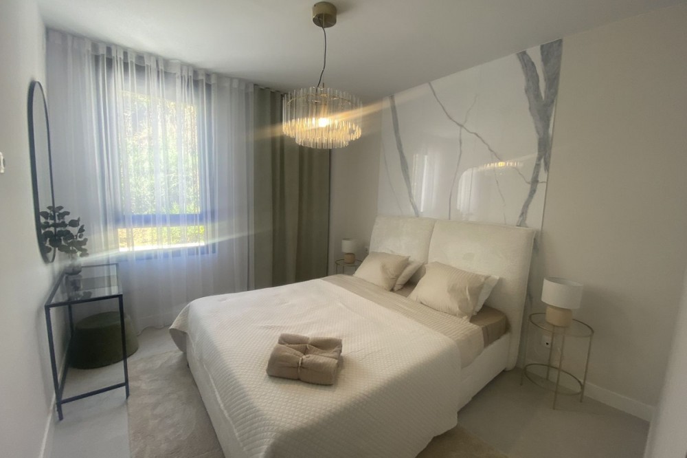- Middle Floor Apartment, Estepona, Costa del Sol. 3 Bedrooms, 2 Bathrooms, Built 120 m², Terrace 20 m². Setting : Close To Shops, Close To Sea, Close To Schools. Orientation : East. Condition : Excellent. Pool : Communal. Climate Control : Air Conditioning. Views : Sea, Mountain, Urban. Features : Covered Terrace, Lift, Fitted Wardrobes, Near Transport, Private Terrace, Gym, Ensuite Bathroom, Access for people with reduced mobility, Double Glazing. Furniture : Fully Furnished. Kitchen : Fully Fitted. Garden : Communal. Parking : Underground.