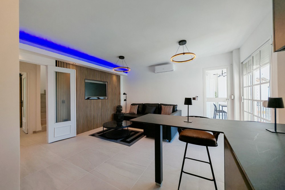 - Penthouse for sale in Atalaya Golf, Estepona with 3 bedrooms, 2 bathrooms, 1 on suite bathroom, 1 toilet and with orientation south/west, with communal swimming pool and communal garden. Regarding property dimensions, it has 118 m² built and 43 m² terrace. Has the following facilities transport near, air conditioning, fully fitted kitchen, jacuzzi, guest room, solarium, double glazing, guest toilet, private terrace, kitchen equipped, living room, sea view, mountain view, golf view, security shutters, internet - wi-fi, covered terrace, fitted wardrobes, gated community, lift, garden view, close to children playground, close to sea / beach, close to golf, uncovered terrace, glass doors, open plan kitchen, balcony, optional furniture, wheelchair-accessible, recently renovated / refurbished, ceiling cooling system, ceiling heating system, close to shops, close to town, close to schools and pets allowed.