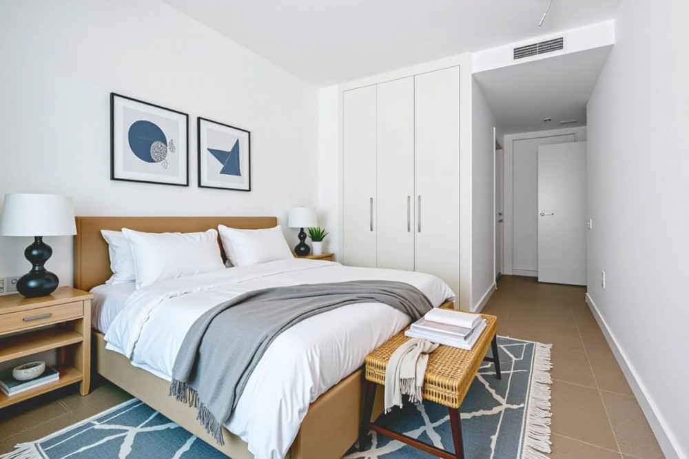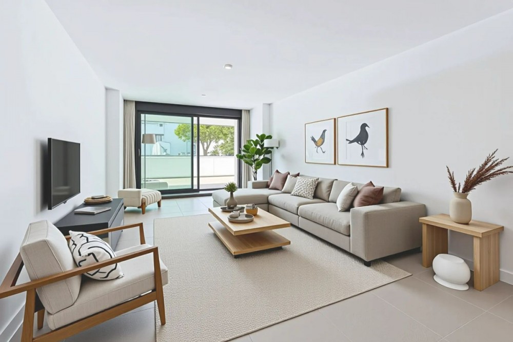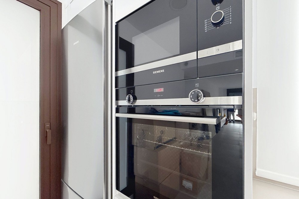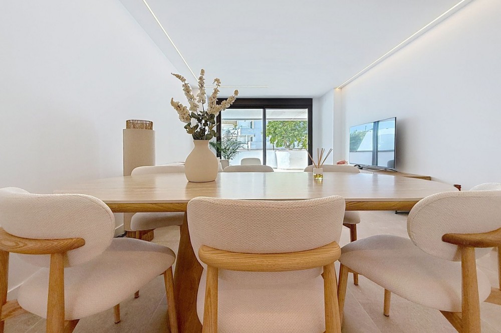 - Elegant and modern elevated ground-floor apartment with a large private terrace of 90 m² and partial sea views. Located in the sought-after area of Las Mesas, just a 10-minute walk from Estepona Marina and 20 minutes from the charming Old Town. Premium features and layout: 4 spacious bedrooms with fitted wardrobes, white lacquered finish and modular interior 2 full bathrooms + 1 guest toilet Designer sanitary ware, thermostatic taps, resin shower trays with glass screens Fully fitted kitchen with Siemens appliances: ceramic hob, oven, extractor hood, dishwasher, fridge and washing machine Contemporary countertops and stylish upper and lower cabinets Large-format porcelain tile flooring and matching white skirting boards White lacquered interior carpentry and reinforced main entrance door Comfort & Efficiency: Hot/cold air conditioning through ducts with thermostat control Aerothermal system for hot water production (ACS) Aluminium windows with thermal break and double glazing Motorised blinds with thermal insulation in living room and bedrooms Mechanical ventilation system for optimal indoor air quality LED lighting in kitchen, bathrooms and hallways Energy Efficiency A Exclusive communal areas: Adult and children's swimming pools Fully equipped gym Sauna Landscaped gardens and bicycle storage Lift with universal accessibility 2 Underground parking spaces and a large storage room included Perfect as a family home or investment in one of the most promising areas of Estepona.