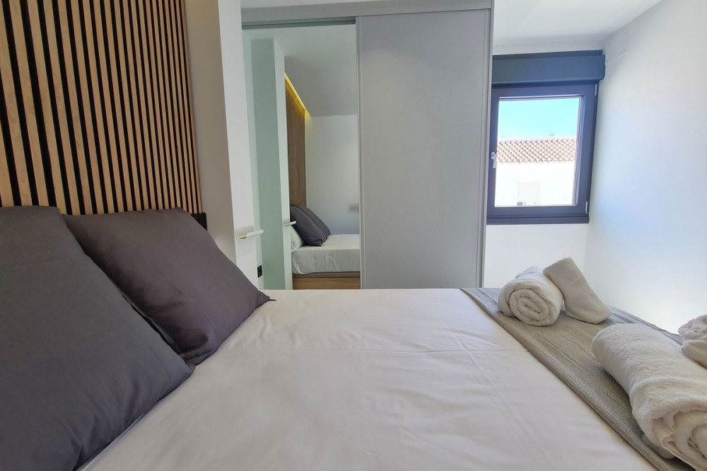 • MAGNIFICENT 4-BEDROOM APARTMENT IN THE CENTER OF ESTEPONA Enjoying an excellent location in the historic center of Estepona, just steps from the town's charming streets, where you can enjoy a wide variety of restaurants, shops, and various leisure options. The beach and its coastal path, which connects the entire Costa del Sol, are just a 7-minute walk away. Well connected by car, it is 80 km from Malaga Airport and 45 minutes from Gibraltar Airport. This apartment is located on the top floor and enjoys a south-facing orientation, allowing for abundant natural light throughout the day. This spacious apartment has also been completely renovated, including the entire electrical system, woodwork, and plumbing. The property boasts a spacious living-dining room with access to the PRIVATE TERRACE and a large, open-plan kitchen fully equipped with excellent quality finishes and modern and functional finishes. The home has four bedrooms. The master bedroom boasts a spacious built-in wardrobe, a safe, and a fully-equipped en-suite bathroom with a beautifully finished shower. The second double bedroom is spacious and bright and features a large built-in wardrobe. The property also has two single bedrooms, one with a built-in wardrobe. All windows have electric shutters, and the apartment benefits from central air conditioning. It also features new, high-quality furniture. A GREAT OPPORTUNITY TO EXPERIENCE THE LUXURY OF OWNED PROPERTY IN THE URBAN CENTER OF ESTEPONA!