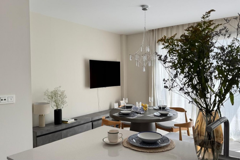 - Spacious Apartment with Sea Views in Las Mesas Homes A fully renovated three-bedroom, two-bathroom apartment for sale, located in the secure and well-maintained gated community of Las Mesas Homes. The property has undergone a complete renovation — everything is brand new, modern, and finished with great attention to detail. The open-plan kitchen and living area lead out to a large terrace with beautiful sea views — perfect for relaxing or entertaining. One of the bedrooms features a private walk-in closet. Both bathrooms are stylish and offer a high level of comfort. The urbanisation is quiet and green, with a communal swimming pool and landscaped areas. The price includes an underground parking space as well as a private storage room — a practical solution for extra space. Ideally located close to supermarkets, restaurants, parks, and all essential amenities. A perfect choice for both permanent living and investment.
