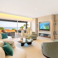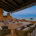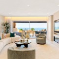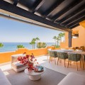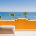 • This fully remodelled 4 bedroom and 4 bathroom apartment is an amazing opportunity for people who are looking for luxury and comfort in a stunning beachfront location. The spacious living and dining room and the luxurious master bedroom with its en-suite bathroom and walk-in wardrobe both have direct access to the impressive south facing terrace with panoramic sea views. Los Granados del Mar is one of the most exclusive urbanizations on the New Golden Mile with breathtaking views of the Mediterranean Sea. Its combination of beautifully maintained gardens and luxurious facilities such as an on-site restaurant, a heated indoor pool, 2 outdoor pools, a gym, a sauna, a Jacuzzi and 24h security make this community one of a kind. It has direct beach access and is very close to all amenities, shops, schools, high class restaurants, the newly build Laguna complex and the center of Estepona. This bright 187 m² apartment boasts a brand-new open-concept designer kitchen with premium German appliances and luxurious extras, including a Bang & Olufsen sound system, an electric fireplace, and a freestanding bathtub. Underground parking with direct lift access to the apartment as well as a secure storage room are included in the price.
