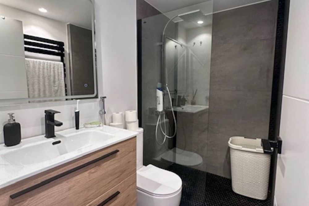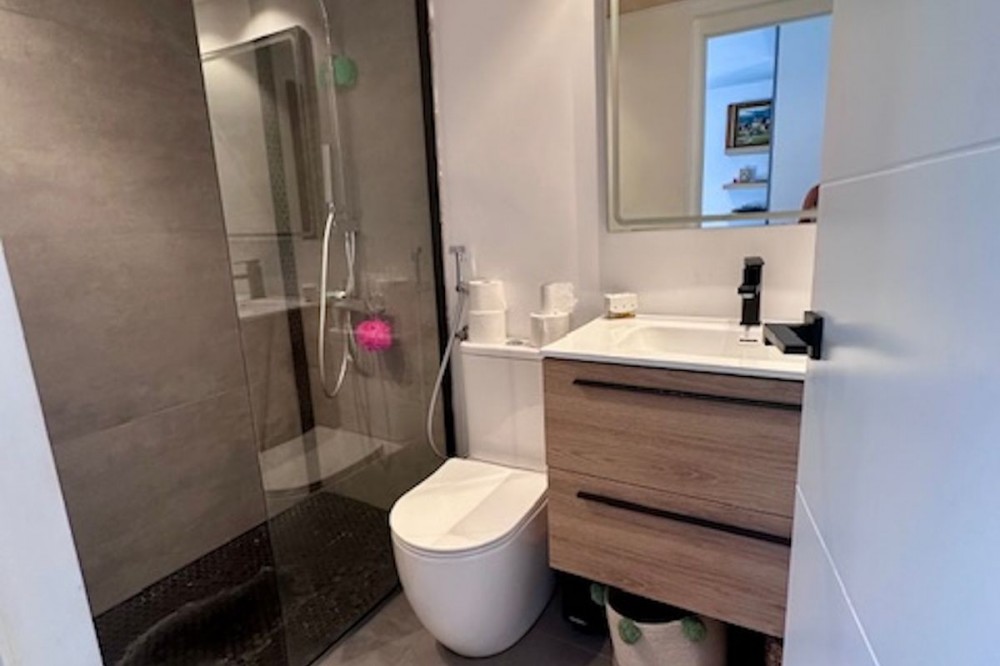 - MODERN GROUND FLOOR APARTMENT - FULLY RENOVATED AND WITH PRIVATE POOL Magnificent apartment with a private garden and pool, located in one of the best and most sought-after areas of Estepona (just 5 minutes from San Pedro de Alcántara). Urb. El Paraiso, walking distance to all amenities and the golf course, is a private community with a communal pool and gardens. This property has been completely renovated and modernized with the best materials on the market (high-end, in each of its rooms). Spacious entrance hall, with access to the majestic living room with a fully open kitchenette. The kitchen features all top-brand appliances and has been built with a central island and plenty of storage space. Ideal for families. Living room with separate areas, including a full bathroom for guest use. To the right of the entrance hall, we find the bright and spacious guest bedroom with an en-suite bathroom, also renovated. The master bedroom, ultra-modern, has been divided into two parts: a bathroom area with a shower, and a separate toilet area (his and hers). A huge, well-divided dressing room, with lighting, is custom-built. The master bedroom has direct access to the home's garden, as does the living room. We have a large covered porch for BBQs, summer dinners, and an outdoor area with a magnificent private pool. On the porch, we have a large enclosed storage space for all garden utensils. The apartment also has a direct entrance to the home from the street, through the private garden area. This makes it easy to carry shopping bags, etc. This is an apartment with a modern, easy-to-use, and extremely practical style, decorated with magnificent taste, and ideal for either a first or second home in Spain. The location is unbeatable, just 5 minutes from San Pedro de Alcantara and 10 minutes from Marbella and Estepona. Don't hesitate to call us to schedule a viewing. This property is truly worth a visit. You won't regret it!