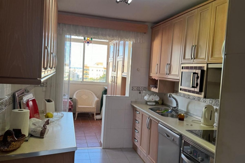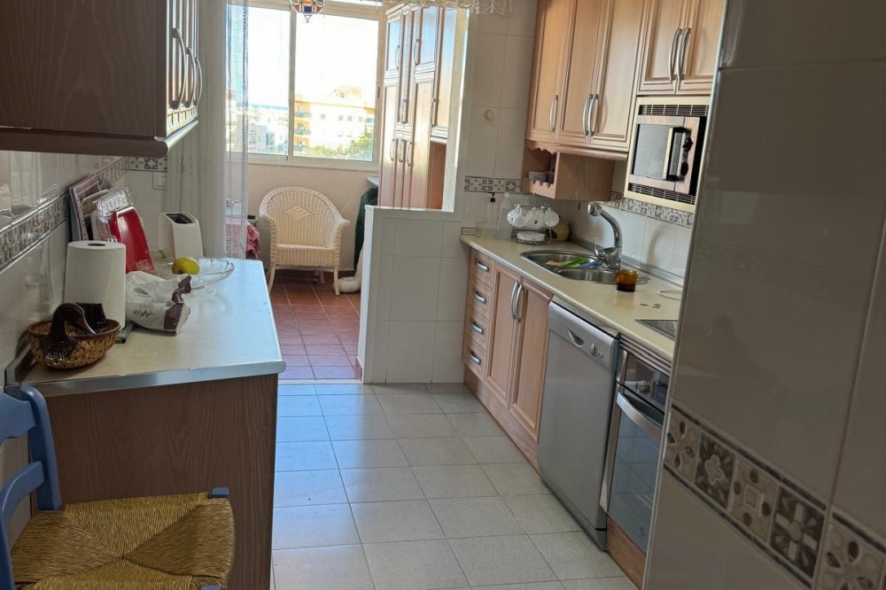- Middle Floor Apartment, Estepona, Costa del Sol. 3 Bedrooms, 2 Bathrooms, Built 112 m², Terrace 19 m². Setting : Town, Commercial Area, Village, Close To Shops, Close To Schools. Orientation : South West. Condition : Good. Climate Control : Air Conditioning, Hot A/C, Cold A/C. Views : Panoramic, Urban. Features : Covered Terrace, Lift, Fitted Wardrobes, Near Transport, Private Terrace, Satellite TV, WiFi, Storage Room, Utility Room, Ensuite Bathroom, Access for people with reduced mobility, Double Glazing, Courtesy Bus, Near Church, Fiber Optic. Furniture : Part Furnished. Kitchen : Fully Fitted. Security : Gated Complex. Parking : Underground, Garage, Covered, Private. Category : Resale.