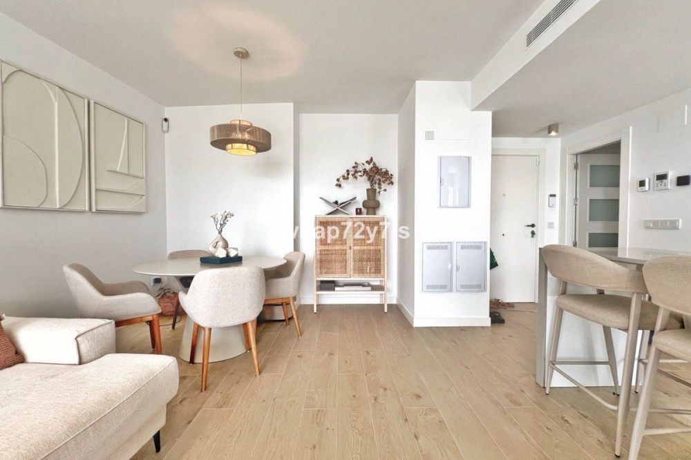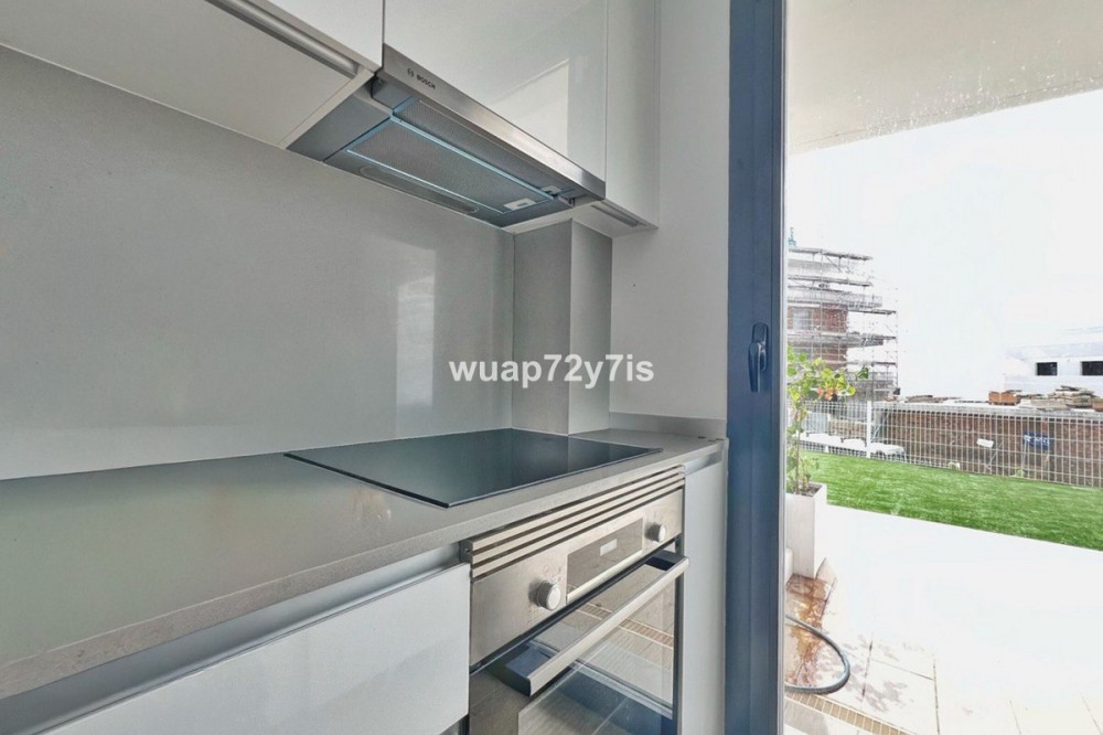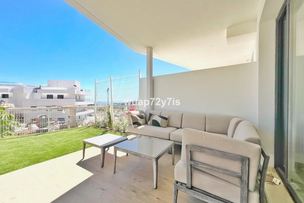 - Two-Bedroom Apartment with Spacious Terrace and Sea Views in One Eighty, Estepona We are delighted to present this elegant ground-floor apartment in the prestigious One80 residential complex. With two bedrooms and two bathrooms, it offers the perfect balance between comfort and style, making it ideal both for permanent living and as a holiday retreat by the sea. Upon entering the apartment, you are welcomed by a bright and spacious living room that combines a comfortable lounge with sofas, a dining area, and a fully equipped open-plan kitchen. Large sliding doors flood the space with natural light and provide direct access to the generous terrace. To the left lies the first bedroom with its own en-suite bathroom, while further along you will find the master bedroom, also featuring an en-suite and direct access to the terrace. The true highlight of this property is its very large covered terrace, which connects all rooms, including the living room, kitchen, and both bedrooms. This exceptional outdoor space is designed for enjoying the Mediterranean lifestyle, with a lounge area furnished with sofas, a dedicated barbecue space, and a private section with natural grass where you can create your own green garden corner. From here, you can enjoy beautiful sea views, making the terrace a perfect place to relax or entertain guests throughout the year. The One80 complex provides excellent facilities such as an outdoor swimming pool, a modern gym, and a covered area with special flooring designed for yoga and Pilates. Its location is equally appealing, just three minutes from Colegio San Juan XXIII and Estepona Football Center, with restaurants and supermarkets within walking distance. The beach and the Elba Estepona Gran Hotel & Thalasso Spa are only five minutes away, while Valle Romano Golf Club can be reached in ten minutes and Estepona Golf in fifteen. Estepona’s charming old town is also only fifteen minutes away, the Sotogrande port twenty minutes, Puerto Banús twenty-five minutes, and Marbella’s historic center just thirty-five minutes by car. This apartment is the perfect choice for those who value comfort, spacious terraces, sea views, and life in a modern residential complex with excellent facilities in a prime location.