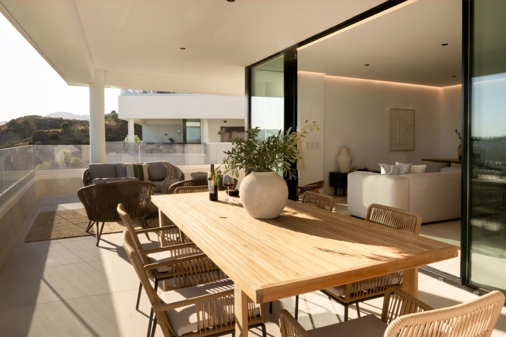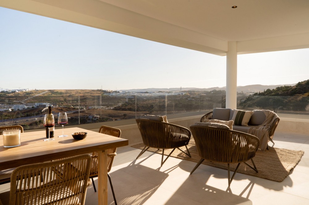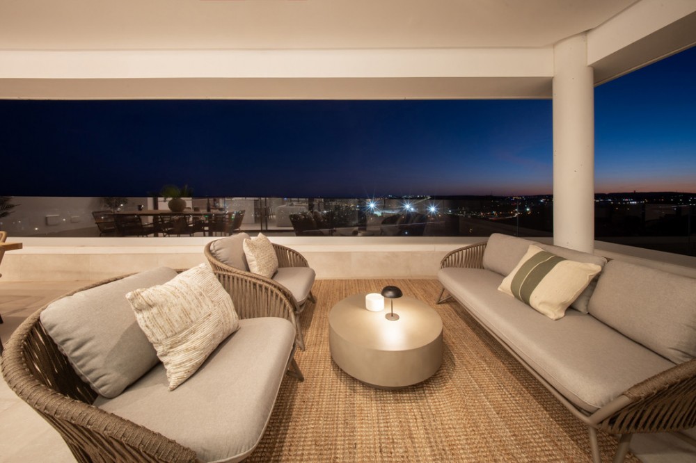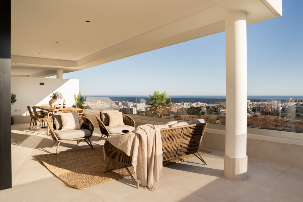 - Welcome to this brand-new, never-lived-in apartment in Mirador de Estepona Hills, one of the most prestigious residential communities in the area of Estepona. Thoughtfully designed for comfort and modern living, this spacious home offers 3 bedrooms and 2.5 bathrooms, including a master suite with en-suite bathroom. The open-plan living and dining area is filled with natural light, flowing seamlessly onto a southwest-facing terrace with sweeping views across Estepona town and the Mediterranean Sea. The apartment is sold fully furnished with elegant, quality pieces that complement the modern aesthetic. A private parking space and storage room are also included, ensuring convenience and practicality. Perfect for someone who would like to purchase this property for short or long term rental investment! Life in Mirador de Estepona Hills is about enjoying a resort-style lifestyle every day. Residents benefit from 24-hour security and concierge service in a gated environment, surrounded by tropical gardens. Amenities include multiple swimming pools, a gym and sauna, padel courts, and an on-site restaurant and bar — all designed to enhance well-being and leisure. With its elevated position, this property offers panoramic views while being just minutes away from Estepona’s charming old town, golden beaches, shopping areas, and a wide range of dining options. For those seeking a brand-new home that combines modern comfort with a resort atmosphere, this apartment represents a rare opportunity in one of Estepona’s most desirable developments.