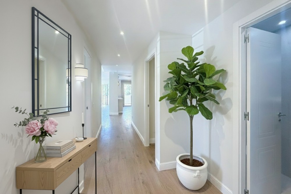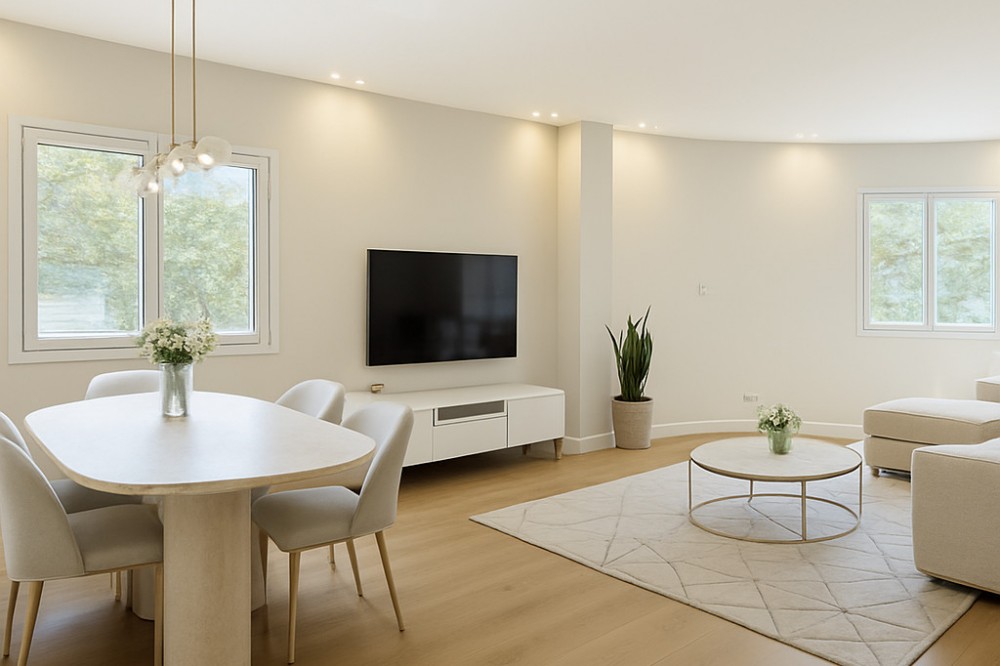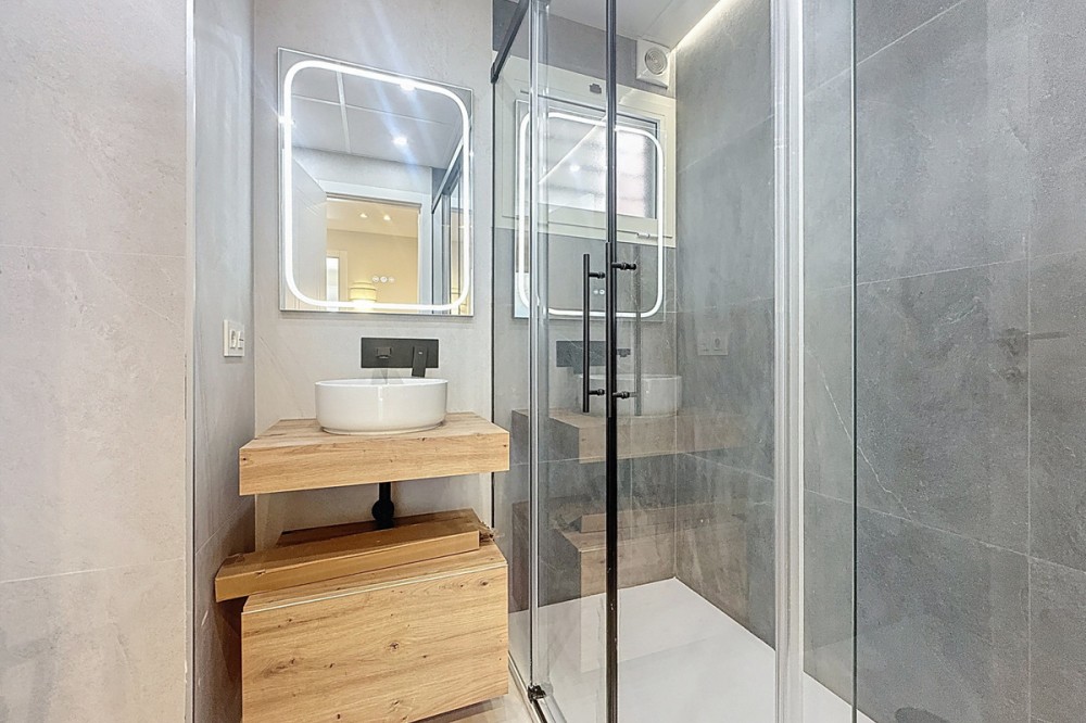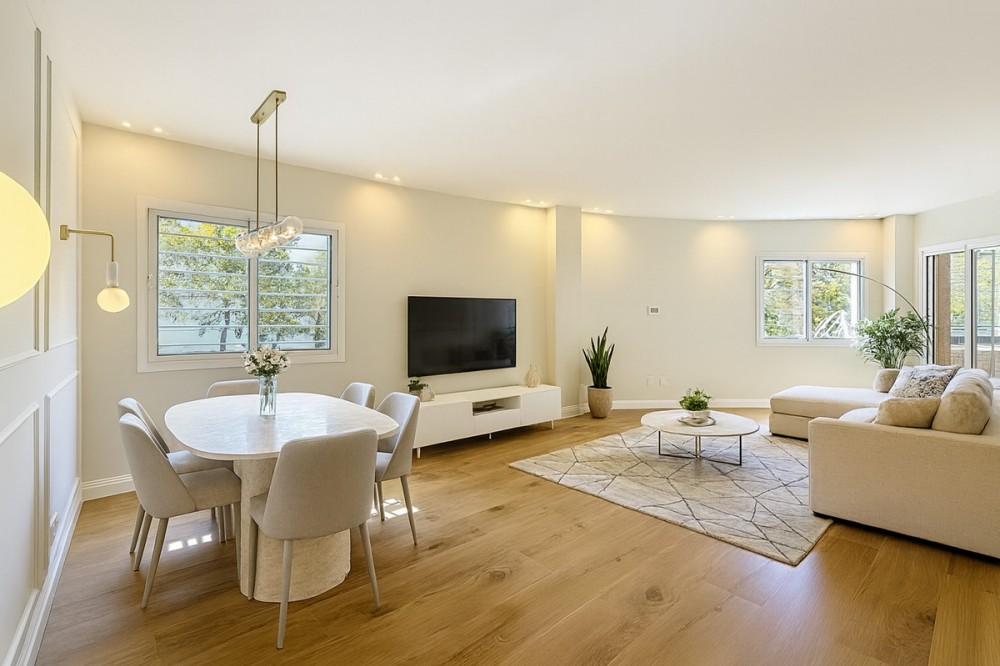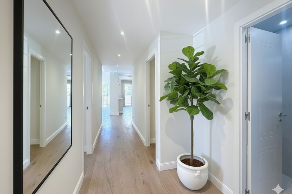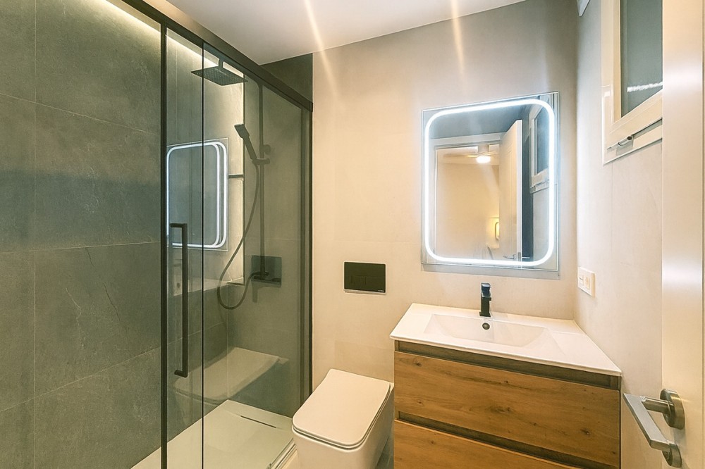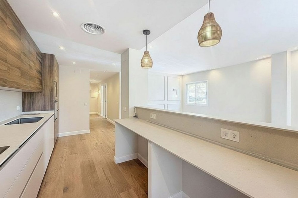 • Spectacular 120 m² apartment, recently renovated with high-quality materials and finishes. The property is delivered fully furnished and ready to move in, decorated with exclusive furniture and equipped with top-of-the-line appliances, offering a modern, functional, and comfortable style in one of Estepona’s most sought-after areas. Strategically located between the Marina and the historic center, this apartment combines proximity to the beach, restaurants, shops, schools, and all kinds of services, making it an ideal option both as a primary residence, a second home, or a high-demand investment. The interior layout includes a spacious and bright living room with direct access to a cozy private terrace of 7 m² with open views. The designer kitchen, fully equipped and with integrated laundry area, offers a practical and elegant space, connected to the terrace and open to the living room through a large peninsula. The apartment features three spacious bedrooms, all with new, lined, and illuminated built-in wardrobes, as well as ceiling fans and a powerful air conditioning system (8,000 frigories) that ensures maximum comfort throughout the year. The master bedroom has an en-suite bathroom with a modern shower and access to a balcony overlooking the interior of the complex, while the other two bedrooms—one currently used as a dressing room—share a second full bathroom. Both bathrooms stand out for their complete renovation with top-quality finishes, each featuring exterior windows that provide perfect ventilation. They include sliding glass shower screens designed to offer greater comfort and elegance. The property includes a parking space in the complex’s underground garage. Communal areas feature a swimming pool, well-maintained gardens, a children’s playground, and an elevator, offering all the amenities necessary to enjoy the Mediterranean lifestyle. This is a unique and exclusive property: a fully renovated and furnished apartment, with brand-new furniture, high efficiency, and in a privileged location, just a 1-minute walk from the marina and the beach, and 5 minutes from Estepona’s old town.