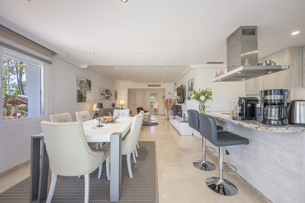 • This ground-floor apartment in Dominion Beach, Estepona East, puts you right in one of the Costa del Sol's fastest-growing areas with excellent investment potential. The 144-square-metre property offers that rare combination of space and location that buyers are searching for in this sought-after part of the coast. Set along a stretch of coastline famous for its beaches, lifestyle, and year-round sunshine, the Costa del Sol continues to attract both international residents and holidaymakers, ensuring strong demand for quality homes. With Estepona's charming historic centre just minutes away and Marbella within easy reach, the apartment offers a blend of resort-style living and the convenience of proximity to some of the region's finest dining, golf, and leisure options. Inside, you'll find three bedrooms and three bathrooms (two en-suite). The living room transitions into an open-plan dining area and kitchen, featuring a breakfast bar and ample storage space. There's a modern fireplace for cooler evenings, and the main bedroom comes with a walk-in wardrobe - proper storage space that you'll appreciate when you're not living out of suitcases. The 20-square-metre covered terrace has space for a dining table and seating area, allowing you to dine outside for most of the year. All bathrooms are contemporary, and the entire property features neutral tones that won't date quickly. Estepona East puts you close enough to Marbella for the glamour but far enough away to avoid the chaos. You're minutes from decent beaches, local shops, and restaurants that locals actually use. The AP-7 motorway access means Málaga airport is within an hour's drive, and Gibraltar is easily reachable for day trips. Schools in the area cater to both Spanish and international families, with several British curriculum options nearby. Estepona's old town offers a quintessential Spanish atmosphere, complete with its weekly markets and family-run tapas bars. At the same time, the newer developments provide modern conveniences, including supermarkets, medical facilities, and sports centres. The coastal path connects you to neighbouring towns for walking or cycling, and the local bus service runs regularly into Estepona centre and along the coast. All property information provided comes directly from the owner. The listing agent acts solely as an intermediary and cannot guarantee the accuracy or completeness of these details. Prospective buyers are encouraged to conduct their own due diligence to verify important information. Thank you for your understanding.