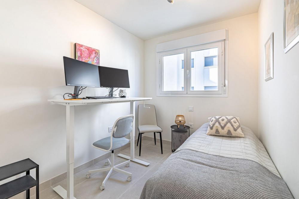 - Welcome to this modern home in Estepona with stunning sea views and a pool. The property features three bedrooms, two bathrooms, a balcony, a terrace, and a garage space, offering both comfort and practicality. Located on the 4th floor of 5, you can enjoy the views from the enclosed balcony. The home also has a tourist license, making it ideal as a permanent residence or a rental investment. The area offers a wide range of restaurants, shops, and pleasant walking paths, and the beach is just 330 meters away – a short walk to enjoy sun and sea. This is the perfect home for those looking to combine sea views, a pool, city life, and comfortable living with parking in Estepona. Don’t hesitate to contact us for a viewing!