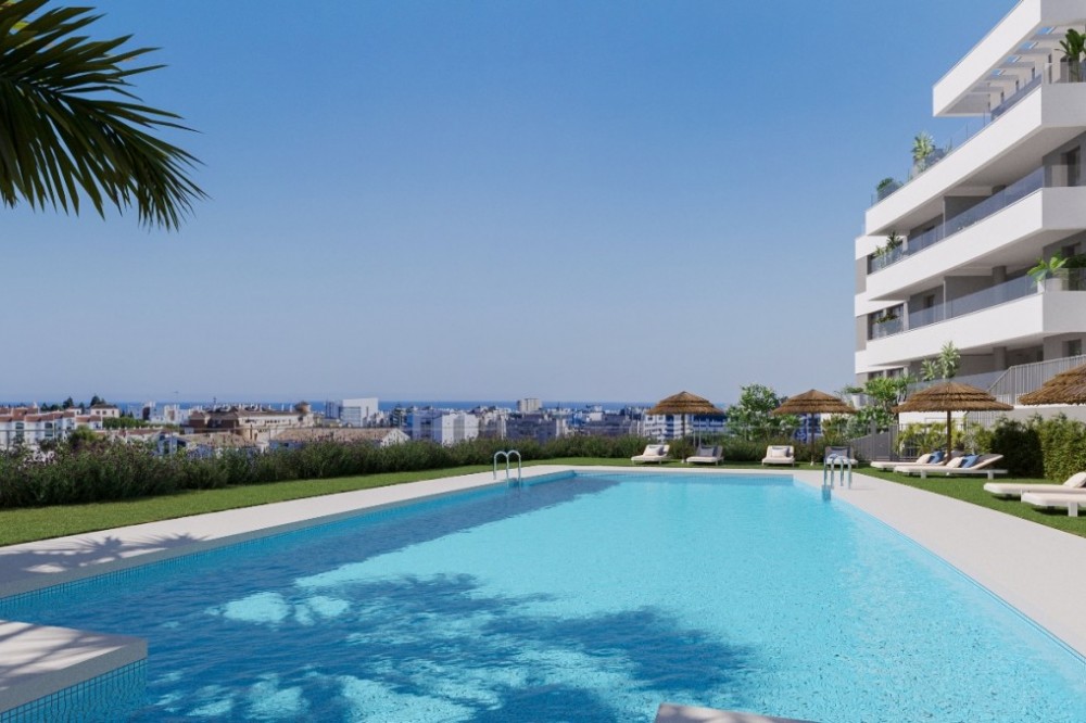 - 2 bed, 2 bath apartments SOLD! 3 bed, 2 bath apartments from 535.000 euros Prices excl. 10% VAT and incl. garage space and utlity room Ready for occupation Q4- 2025 The complex is located a few minutes away from the front sea, all kinds of facilities of the new expansion area of Estepona. This is a new development of apartments offering exclusive common areas where you find two swimming pools with salt chlorination, a gym with a sauna, a co-working area, and a social club. The apartments have been designed following the European concept of open spaces highlighting the fluidity between the living room and the open kitchen with direct access to the terraces overlooking the sea or with a mountain view.