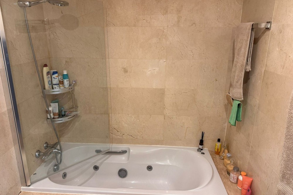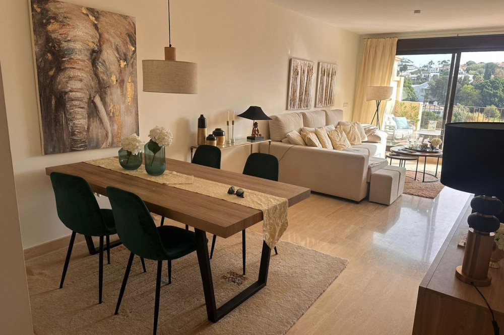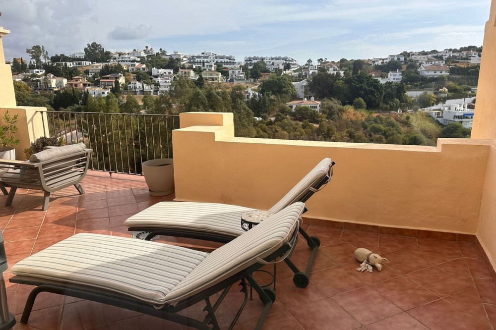- Opportunity! Penthouse on 1st line Azata Golf in Estepona fully furnished and equipped - ready to move in or rent out. The penthouse os located on the 2nd and last floor, has a built area of 135 sqm with a large south-east facing terrace of 26 sqm. Beautiful views torwards the golf course to the surroundings and the hills behind. Distributed in entrance area leading to the spacious living room with open fireplace and outgoing to the large private terrace. New modern kitchen fully fitted and equipped with a utility room beside. High quality and luxury fittings. 2 bedrooms and 2 bathrooms, one en-suite to the master bedroom. Features: creme marble floors, marble bathrooms, double glazing, electric sun blinds, aircondition hot/cold, elevator, garage and storage room, fully furnished, built-in wardrobes, video entrance phone, washing machine and dryer, rental license. Gated community with security service, 2 community swimming pools and children's pool, well maintenenced community gardens. Quiet residencial area, but only minutes away from the beaches and short drive to the port and town of Estepona. Minutes away from the new General Hospital of Estepona. The property is fully legal and comes with a holiday rental license. A perfect property for living the whole year in or having pleasant holidays as well as an investment opportunity and rental business. Spanish banks are offering up to 70% mortgage on purchase price.