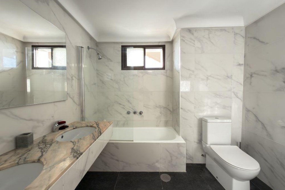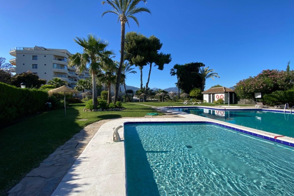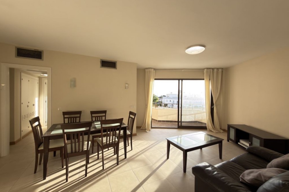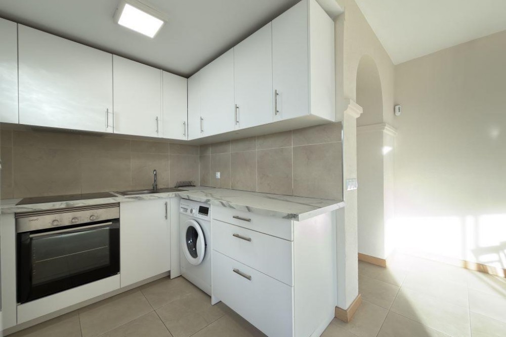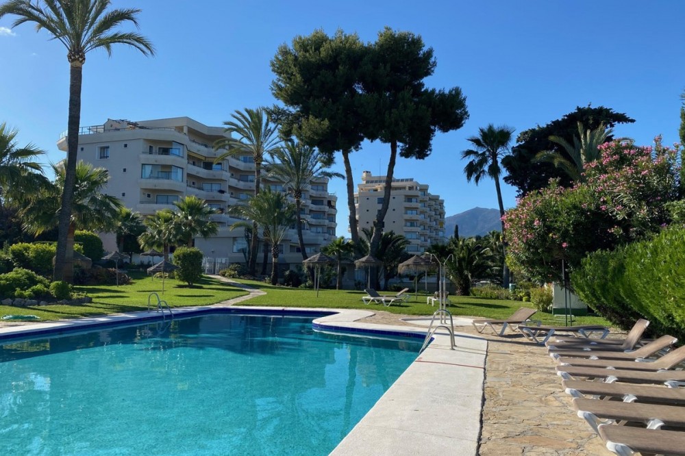 • This bright and stylish two-bedroom, two-bathroom apartment, fully renovated, is located in the prestigious Atalaya Golf area—a peaceful residential setting surrounded by nature and close to all amenities. The interior has been redesigned with a modern, contemporary aesthetic, maximizing natural light and creating spacious, welcoming rooms. The generous living-dining area connects seamlessly to a large terrace with pleasant open views, ideal for relaxing, sunbathing, or enjoying outdoor meals. Both bedrooms are spacious and functional, while the bathrooms feature high-quality finishes and a sleek, modern style. The community offers a large swimming pool and beautifully maintained gardens, ensuring a serene atmosphere throughout the year. A key advantage is that the community fee includes water and hot/cold air conditioning, providing significant savings since both heating and cooling are covered. The property also comes with an assigned parking space on the street, offering convenience for residents and guests alike. With an excellent location close to the beach, golf courses, restaurants, and everyday services, this apartment is ideal as a permanent residence or a holiday home on the Costa del Sol. A move-in-ready home that perfectly blends Mediterranean living with a touch of modern sophistication.