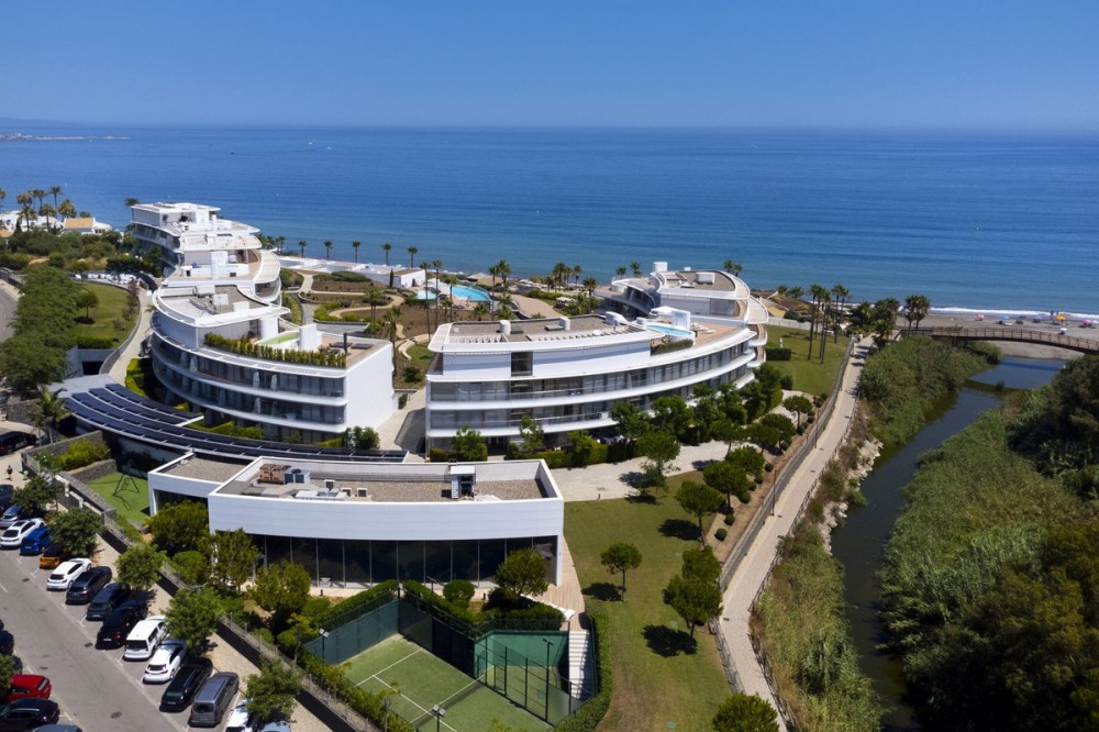 - The Edge – Exclusive 4-Bedroom Seafront Apartment, Estepona This exceptional apartment in the prestigious The Edge by Kronos Homes development epitomises the essence of Mediterranean luxury living. Located directly on the beachfront in Estepona, it offers breathtaking views of the Mediterranean Sea, Gibraltar, and the African coastline. Property Description A contemporary apartment of approximately 170 m² (including terraces) featuring: 4 spacious bedrooms with direct access to terraces, 3 elegant bathrooms, including a master suite with bathtub and walk-in shower, a designer kitchen fully equipped with premium Gaggenau appliances, a bright, open-plan living room with floor-to-ceiling windows and stunning sea views, a main terrace offering an impressive panoramic view of the Mediterranean, 2 underground parking spaces and a storage room. The Edge Complex Designed by the renowned architect Rafael de La-Hoz, The Edge stands out for its organic architecture and minimalist luxury. Residents enjoy access to: direct beach access, spectacular infinity pools overlooking the sea, a wellness area with an indoor heated pool, gym, and sauna, concierge service and 24-hour security, expansive Mediterranean gardens creating a private oasis of tranquillity. Location The Edge is ideally situated just minutes from Estepona’s town centre and only 20 minutes from Puerto Banús. Surrounded by golf courses, fine dining, shops, and a marina, with easy access to Malaga and Gibraltar airports. Highlights Frontline beach location Spectacular sea views High-end finishes: kitchen & Gaggenau appliances Prestigious Kronos Homes development The perfect combination of luxury, privacy, and comfort