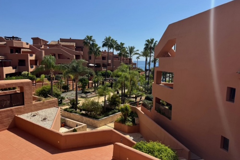 • Great Price! First beach line apartment in New Golden Mile Located in the sought-after beachfront community on Estepona’s prestigious New Golden Mile, this elegant 2-bedroom, 2-bathroom apartment offers a luxurious coastal lifestyle with direct beach access and top-tier amenities. Walking distance to the vibrant Estepona town center with its bars, restaurants and shops. Boasting a south-east orientation, the property enjoys abundant natural light throughout the day and offers partial sea views from its spacious 20m² private terrace – perfect for al fresco dining or relaxing in the Mediterranean breeze. There is a garage space and store room included.