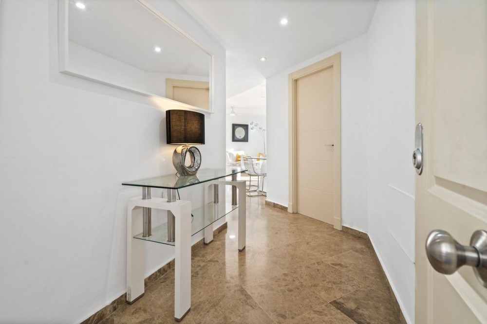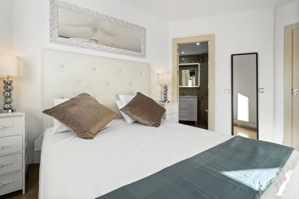 • Beautifully Presented 3-Bedroom Apartment by Estepona Port Perfectly located just a stone’s throw from the vibrant Port of Estepona, this stunning 3-bedroom, 2-bathroom apartment combines modern open-plan living with unbeatable convenience and sea views. The property features three spacious double bedrooms, including a master suite with an ensuite bathroom. The bright and airy living area flows seamlessly onto generous terrace, where you can relax and enjoy views of the sea and marina. The fully fitted kitchen includes a useful adjoining utility room with a washing machine and dryer. Residents benefit from a beautifully maintained community with a large swimming pool surrounded by grassed and shaded areas, and a separate children’s pool — ideal for families. The apartment comes fully furnished and ready to move into and also with an underground parking space and a large storage room. Property Highlights: Middle Floor Apartment in Estepona, Costa del Sol 3 Bedrooms | 2 Bathrooms Built: 113 m² | Terrace: 18 m² Orientation: South-East Condition: Excellent, Recently Renovated Features & Amenities: Communal pool with children’s area, air conditioning (hot & cold), covered terrace, lift, fitted wardrobes, private terrace, high-speed WiFi, marble floors, double glazing, and entry phone security. Location: Prime beachside position — walking distance to the port, shops, restaurants, beaches, schools, and town centre.