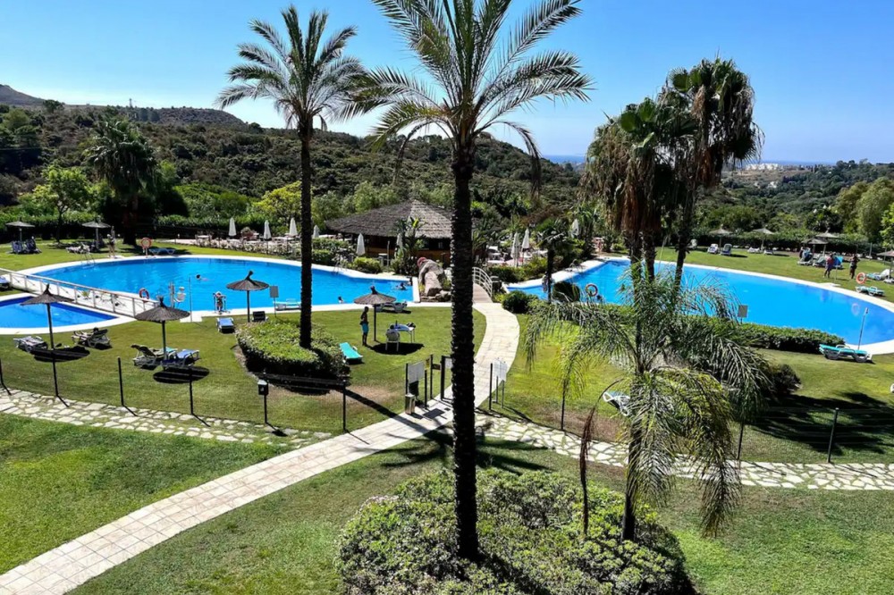 - Spacious & Serene 2-Bed Apartment in the Exclusive Parque Botánico Resort – Panoramic Views & Resort-Style Living This attractive and spacious 2-bedroom, 2-bathroom apartment is set within the highly sought-after Parque Botánico Resort, offering a peaceful retreat surrounded by nature, yet only minutes from the vibrant Costa del Sol lifestyle. Step inside to discover a bright living area with a cosy fireplace and direct access to a generous 25 m² southwest-facing terrace that showcases panoramic views of the lush gardens, mountains, and even a charming wooden bridge. The independent fully equipped kitchen offers terrace access and has the potential to be easily converted into an open-plan layout to suit modern tastes. The property includes two spacious bedrooms, one of which is en suite, and comes equipped with built-in wardrobes, electrical window shutters, and hot/cold air conditioning for year-round comfort. It is sold with a private underground parking space and storage room, with additional free parking available within the community. This apartment is ideal for those seeking privacy, natural surroundings, and a strong sense of community. Exclusive Resort-Style Amenities Parque Botánico is a gated resort with 24-hour security, offering residents access to: 5 outdoor swimming pools, including a large family-friendly pool complex with a Spanish-style bar/restaurant just a 1-minute walk away A 25m indoor heated pool, fully equipped gym, Jacuzzi, sauna, and steam room Children’s play areas, 4 tennis courts, 2 basketball courts, indoor squash courts, and Padel courts Tropical landscaped gardens, eucalyptus trees, and peaceful green zones filled with birdsong An on-site restaurant and bar serving local and international cuisine This family-friendly, multicultural community offers everything needed for a relaxing holiday or permanent residence on the Costa del Sol. Prime Location & Connectivity Only 7 minutes by car to the beach, Mercadona supermarket, and Cancelada’s public schools 10 minutes to Estepona, 15 minutes to Puerto Banús, and 20 minutes to Marbella Surrounded by 5-star golf courses, Selwo Aventura Animal Kingdom, and excellent medical and educational facilities: Private Hospital Hospiten: 4 km Public School Cancelada: 5 km Private International School Estepona: 9 km Gibraltar Airport: 58 km | Málaga Airport: 77 km Don't miss out on this fantastic opportunity to own a well-appointed home in one of the Costa del Sol’s most complete resort communities. Contact us today to arrange a viewing