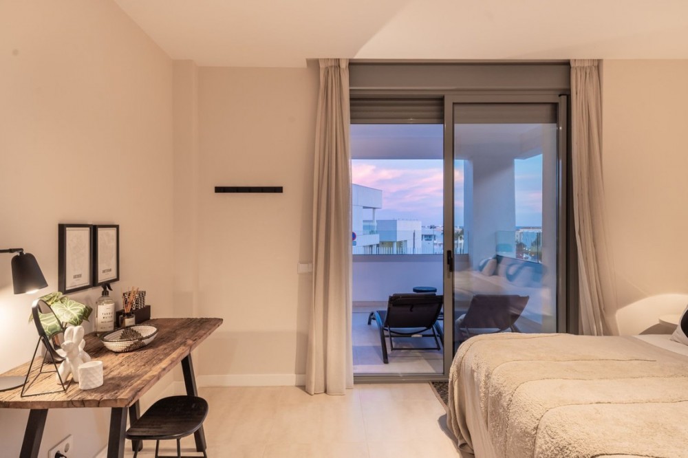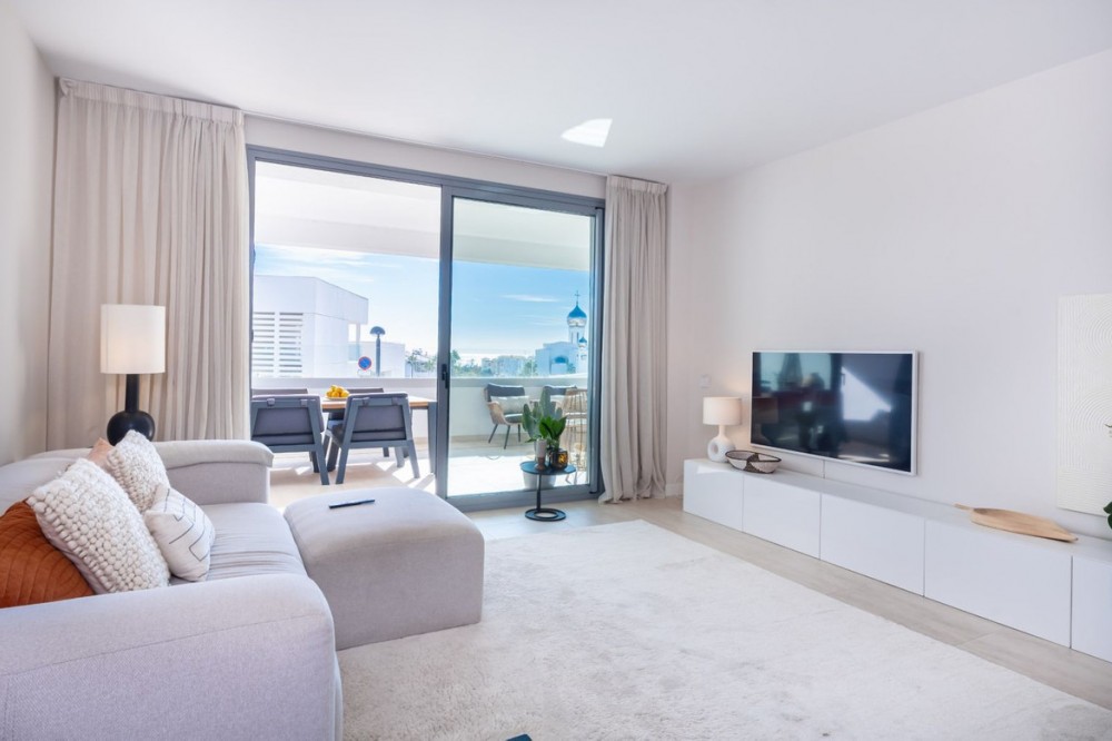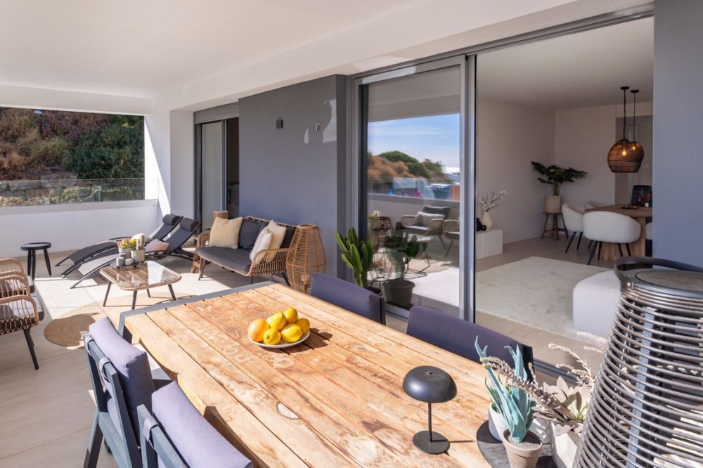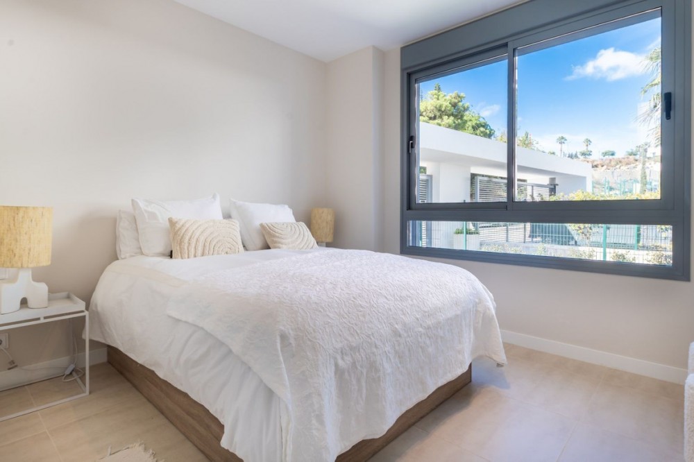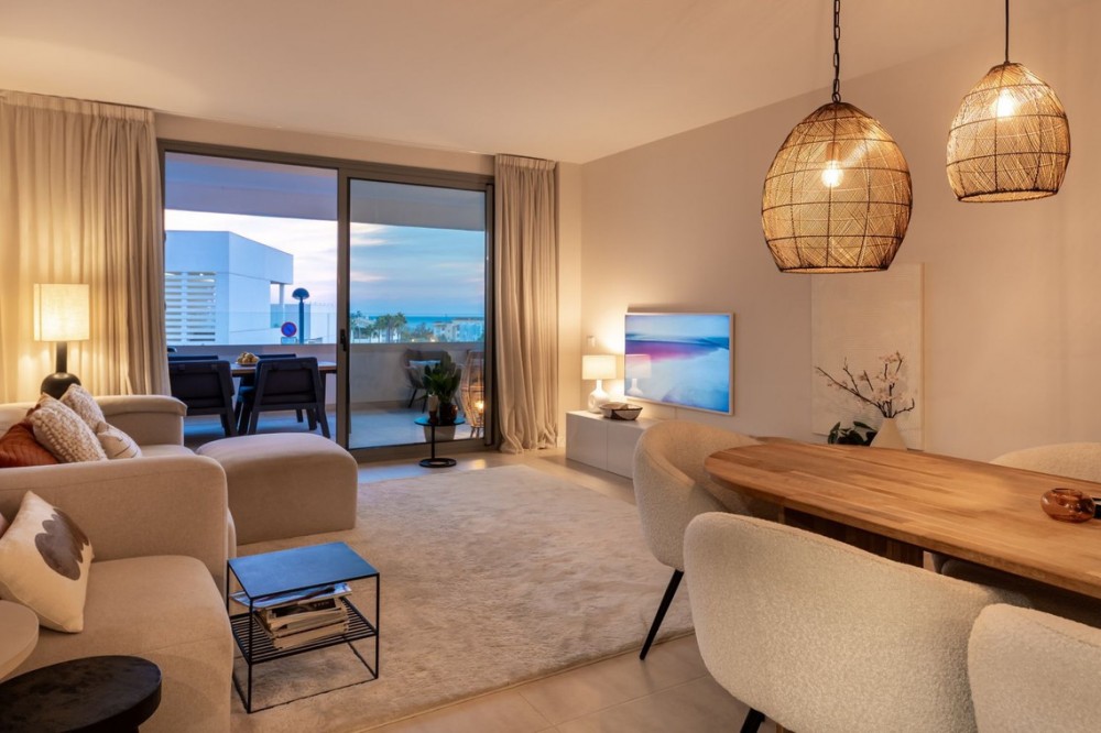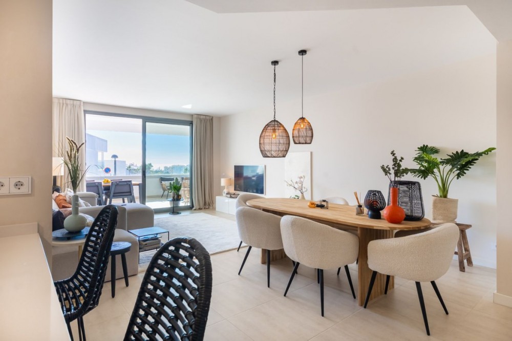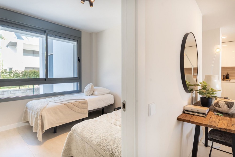 - Stijlvol appartement met 3 slaapkamers en uitzicht op zee – Vanian Gardens, Selwo (Estepona) Prachtig gepresenteerd en volledig gemeubileerd appartement met 3 slaapkamers en 2 badkamers in de gewilde wijk Vanian Gardens. Deze moderne woning biedt een lichte, open woonruimte, een volledig uitgeruste keuken en een extra grote woonkamer die uitkomt op een terras op het zuidwesten met uitzicht op de Middellandse Zee. De hoofdslaapkamer beschikt over een eigen badkamer en inbouwkasten, terwijl twee gastenslaapkamers een moderne inloopdouche delen. Inclusief eigen parkeerplaats en een grote berging. Bewoners genieten van uitzonderlijke voorzieningen: een verwarmd zwembad, twee extra zwembaden, een fitnessruimte, een spa met jacuzzi's, Turkse en Finse sauna's, een bioscoop, een jeugdclub, een co-workingruimte, kinderspeelplaatsen en prachtig aangelegde tuinen. Gelegen op slechts 800 meter van het strand en het kustpad Senda Litoral, met restaurants, strandtentjes, sportvelden, een paddleclub en cafés in de buurt. Slechts 10 minuten van de stad Estepona en 20 minuten van Puerto Banús en Marbella. Een direct bewoonbare woning die comfort, stijl en een ongeëvenaarde levensstijl biedt aan de New Golden Mile.