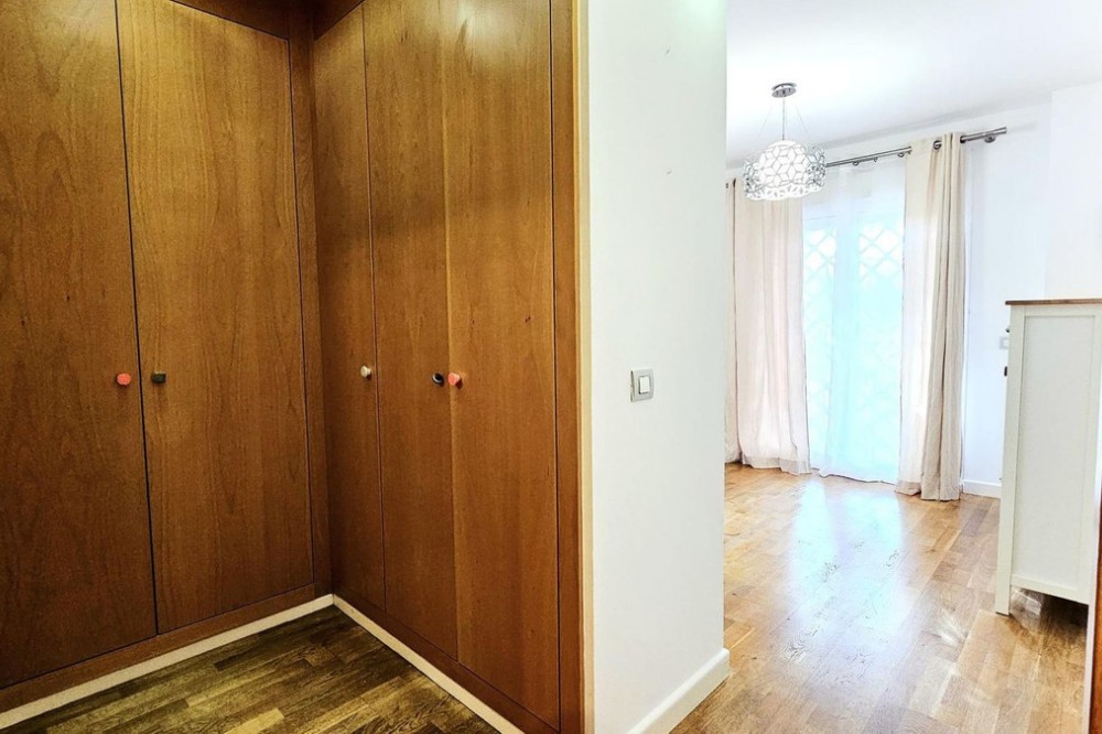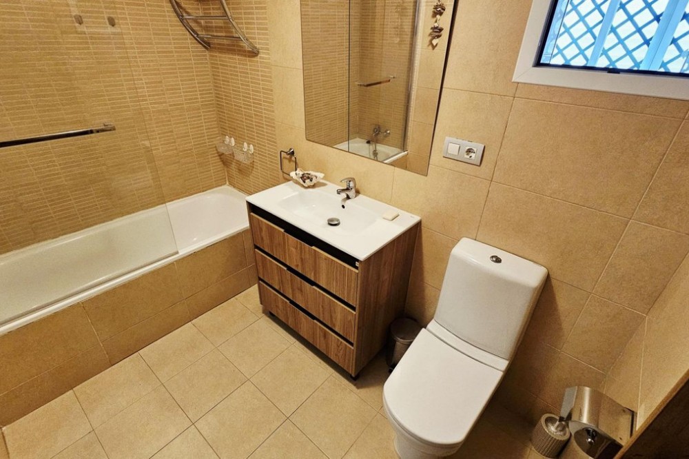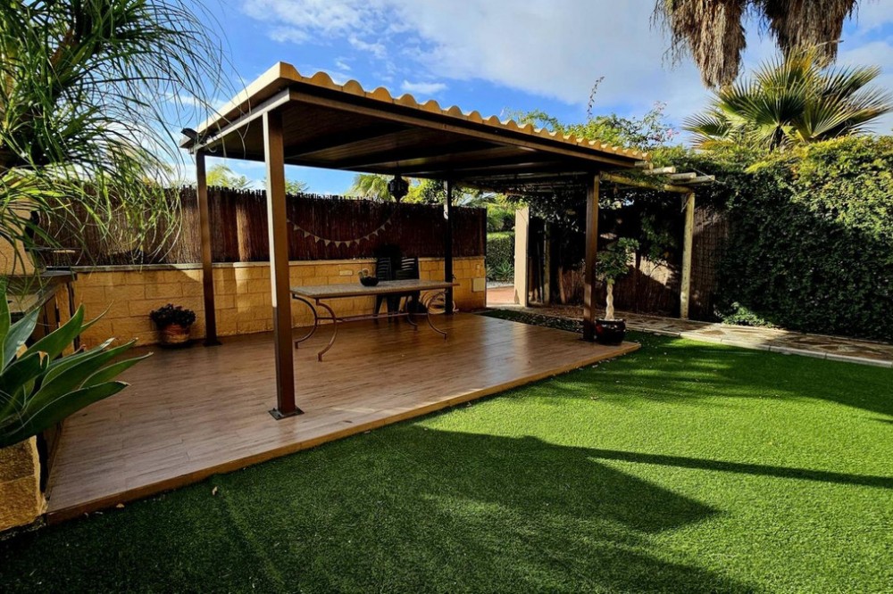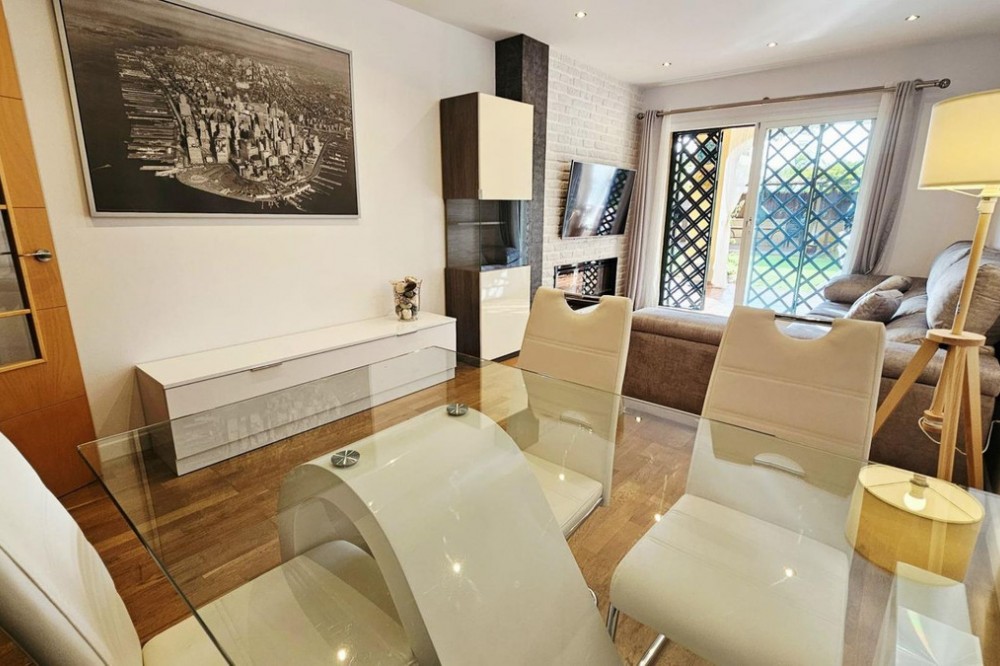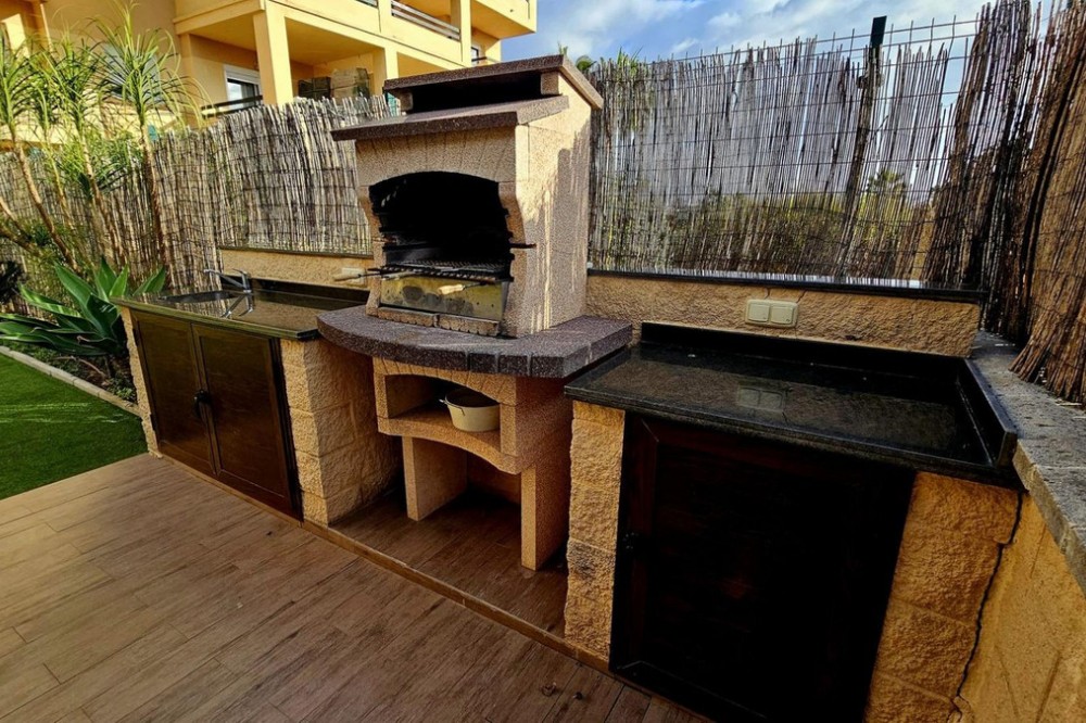 - This beautiful two-bedroom ground-floor apartment boasts a spacious outdoor area. It features a large covered terrace and a spacious private garden with a barbecue, pergola, and direct access to the swimming pool, paddle tennis court, and children's playground. The porch has a pergola, perfect for relaxing or gathering outdoors. The entire garden is paved and covered with high-quality artificial turf, making maintenance easy and ensuring it looks its best year-round. A barbecue area has also been created, equipped with custom-made furniture, a sink, water and electricity connections, and a second pergola that provides shade and comfort, creating an ideal space for meals and outdoor gatherings. Thanks to these improvements, the garden is a practical, comfortable, and modern space, perfect for enjoying time with friends and family. The apartment is located in the prestigious Selwo area, on Estepona's New Golden Mile, near Resina Golf, the new Padel Club, and the American School. Its south-facing orientation guarantees natural light throughout the day. This apartment features two bathrooms, one of which is en-suite with a dressing room and direct access to the terrace and garden; an extended kitchen with a laundry area and access to another terrace; and a bright living-dining room with access to the outdoor areas. It includes hot/cold air conditioning throughout, an underground parking space with direct elevator access to the apartment door, and additional outdoor parking for guests. The community, comprised of only 32 apartments, offers a large swimming pool, a children's playground, and a paddle tennis court. Its excellent location, less than 10 minutes from San Pedro Alcántara and Estepona, and very close to Marbella and Puerto Banús, makes this property a unique opportunity. Thanks to its wonderful outdoor spaces and the area's pleasant climate, it feels like home. A viewing is highly recommended.