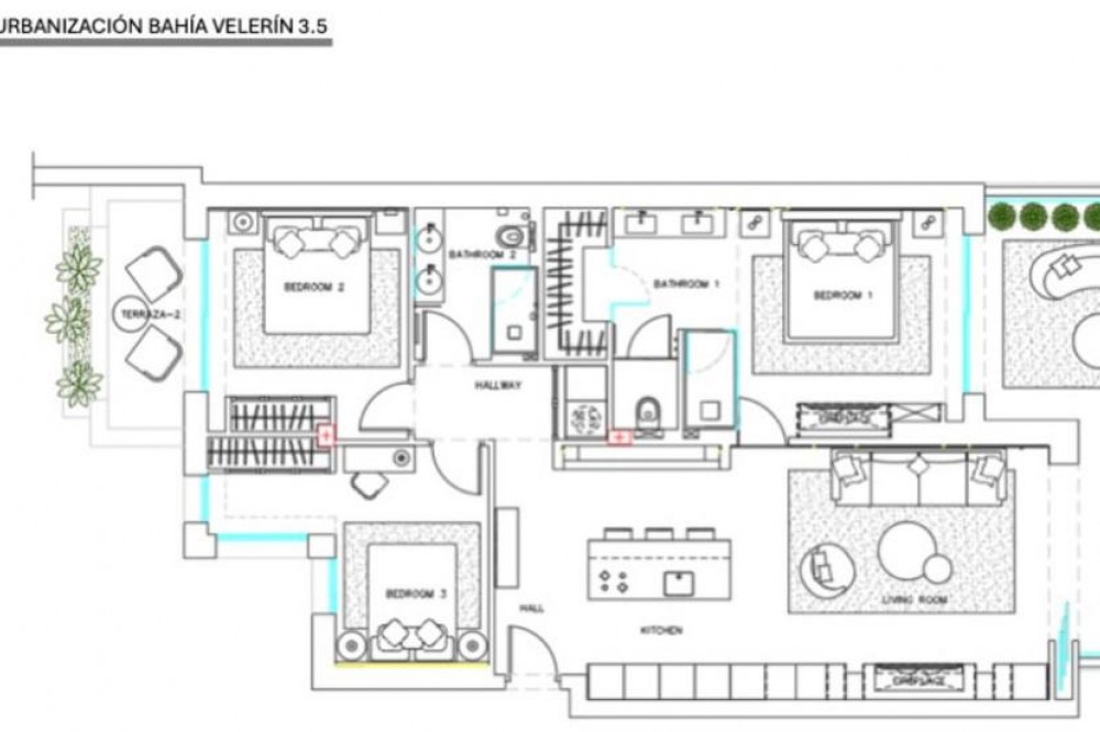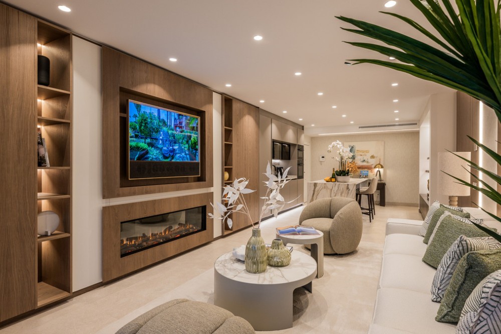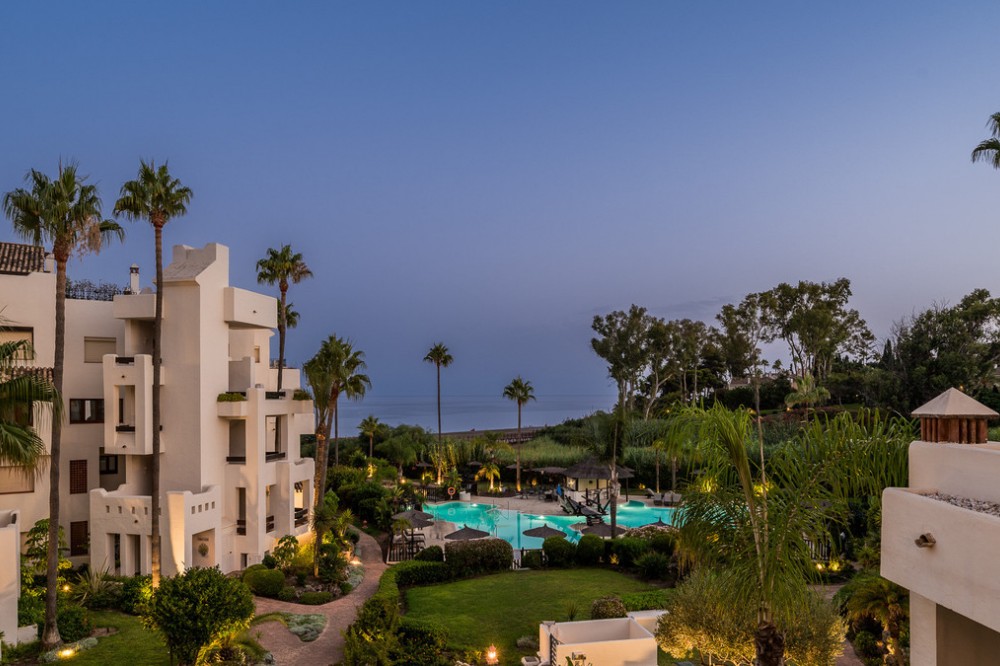 - Location & Community Positioned between Marbella and Estepona, Bahía del Velerín is a prestigious beachfront gated community renowned for its lush tropical gardens, expansive lagoon-style swimming pool with snack bar, 24 / 7 security, and direct access to one of the region’s finest beaches. Property Highlights 3 bedrooms | 2 bathrooms 120 m² built interior | 38 m² terrace Fully renovated to the highest standards, with sea and garden views. South-west facing, taking full advantage of light and location. Terrace with glass curtain system and under-floor heating, effectively extending the living space for all-year use. Interior & Finishes Every detail has been considered: Designer open-plan kitchen with premium German appliances Invisible induction hob, wine fridge, Thermomix station Electric fireplace and Bang & Olufsen high-end sound system High-quality flooring, custom built-in wardrobes, hidden laundry room area Storage room and underground parking included for convenience. Lifestyle & Investment Potential Situated in one of the most sought-after beachfront communities of the Costa del Sol, the property offers the perfect blend of a luxurious permanent home, an exclusive holiday residence or a high-end rental investment. Residents benefit from immediate beach access, resort-style communal facilities and a serene yet connected coastal lifestyle. Summary Bahía del Velerín 3.5 is a turnkey luxury apartment in a prime beachfront setting, refurbished to exceptional standards and ready for immediate occupation or rental. With 3 bedrooms, 2 bathrooms, 120 m² of elegant interior space and a 38 m² terrace overlooking lush gardens and the Mediterranean Sea, this home represents an outstanding opportunity.