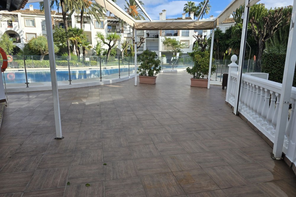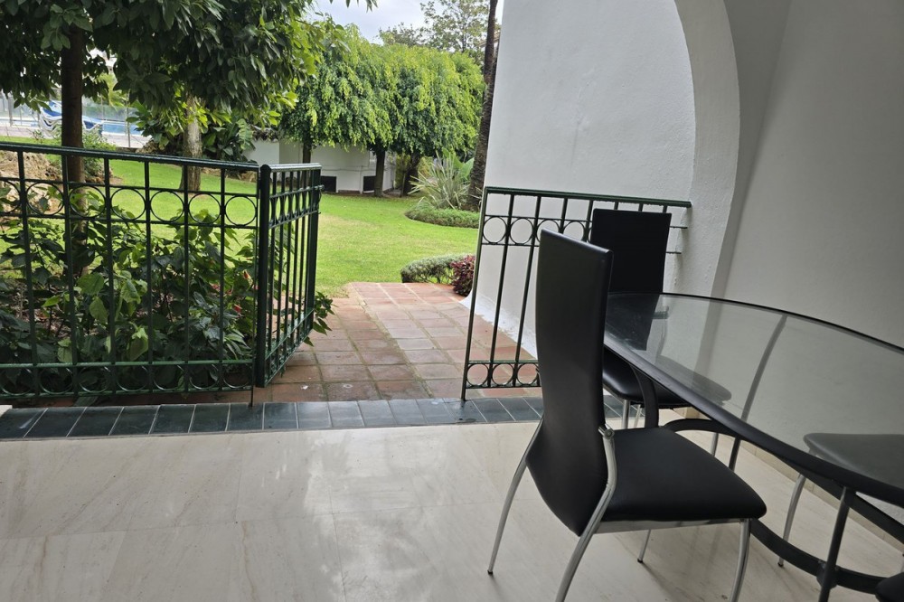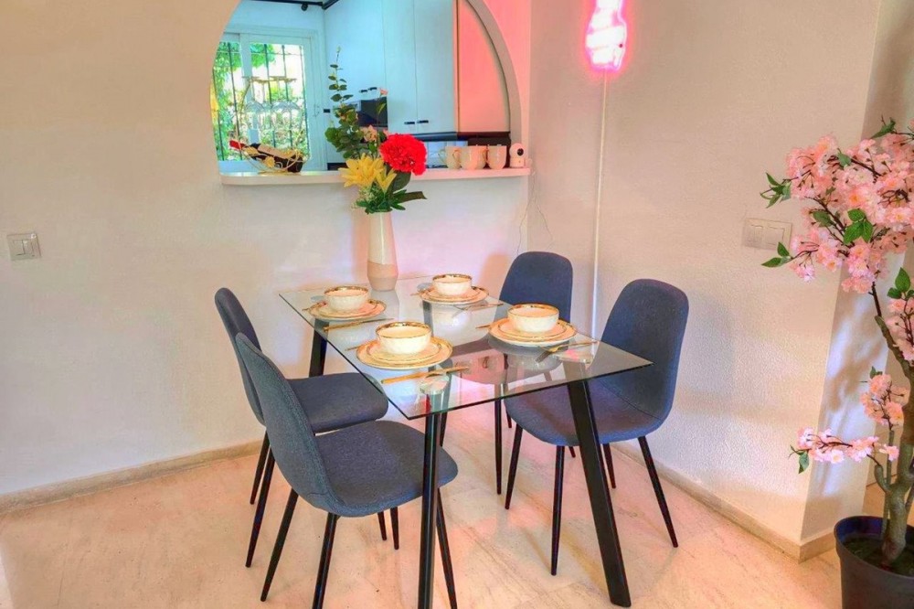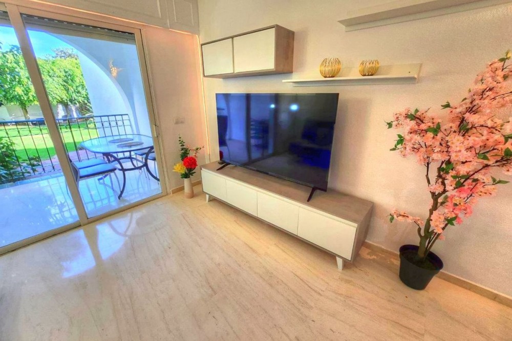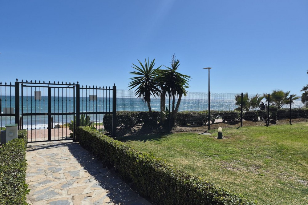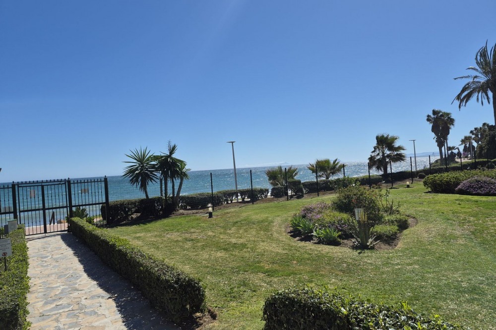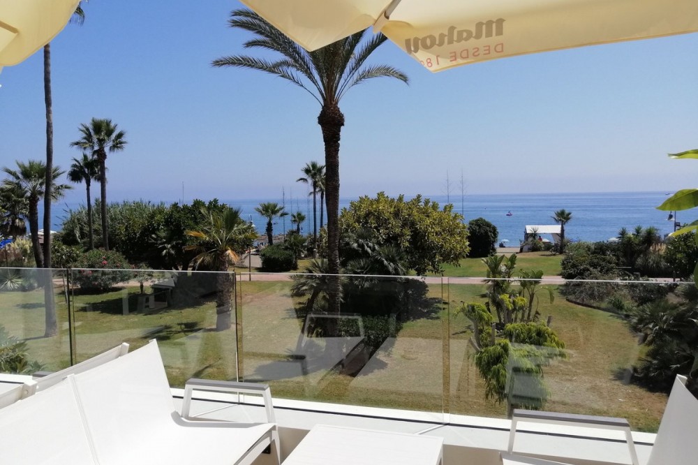 - First line beach complex. Direct access to beach promenade, mediteranean sea and beach restaurants. Underground garage and plenty parking posibilities in the urbanisation, storage room, Short term rentals permission. Beautiful tropical garden with pool, children pool, changing room, WC and restaurant, Gated urbanisation. 2 bedrooms, 1 bathroom, 1 salon with dining area, 1 american kitchen, great terrace with garden views and direct access to garden, pool and beach. Air con and heating. Installed wardrobes, renovated and new furnitures as well as fully furnished kitchen ready for living or short term rentals. Great investments, rental incomes whole year. Dont miss the project.