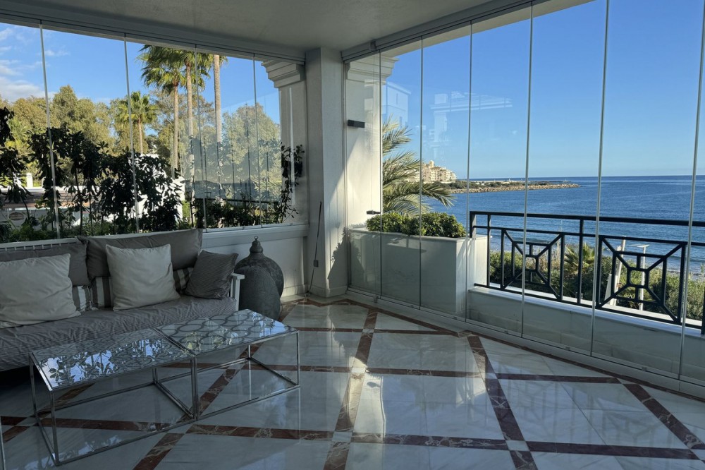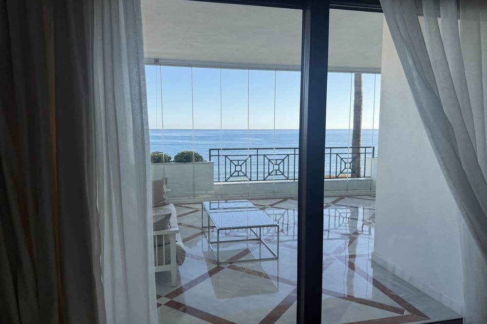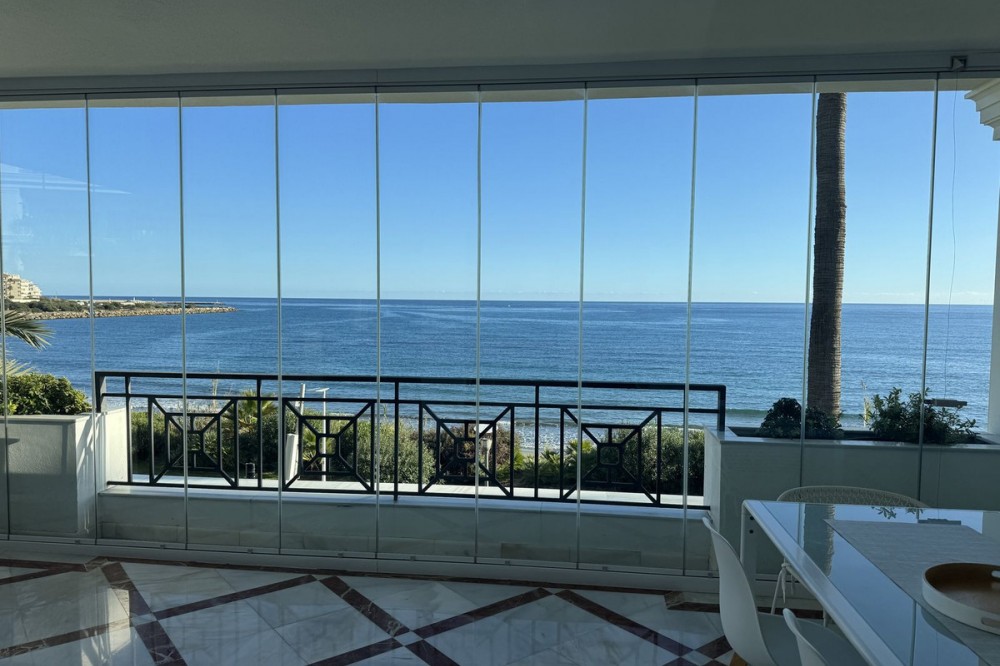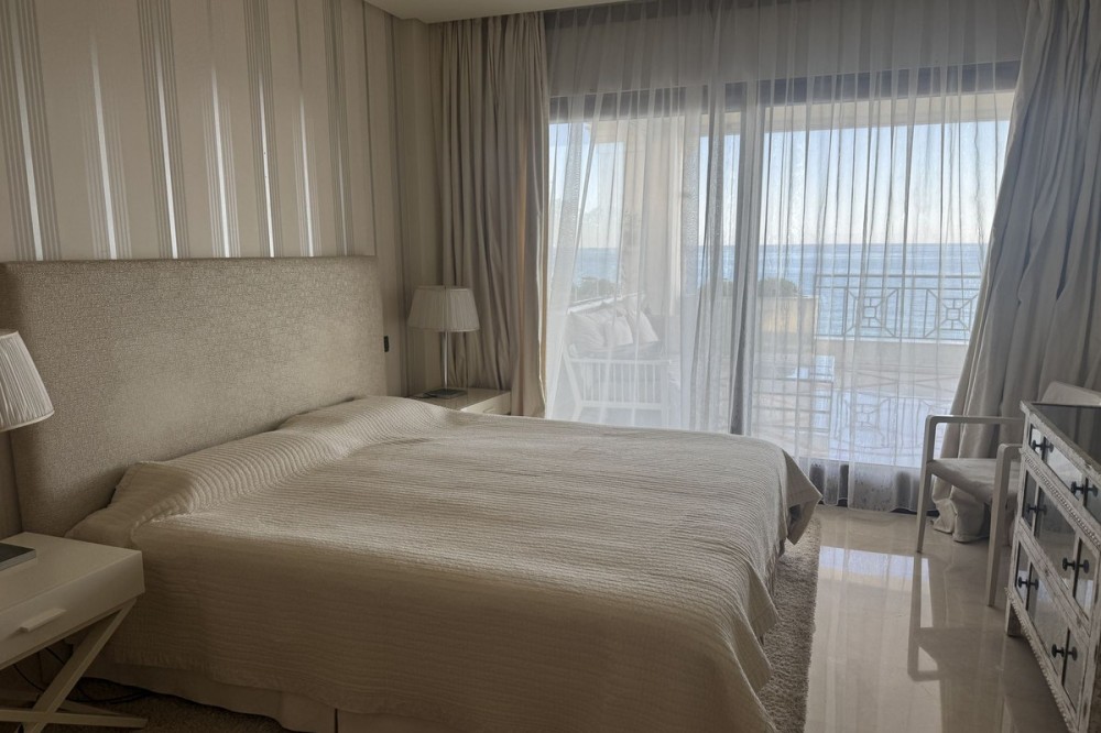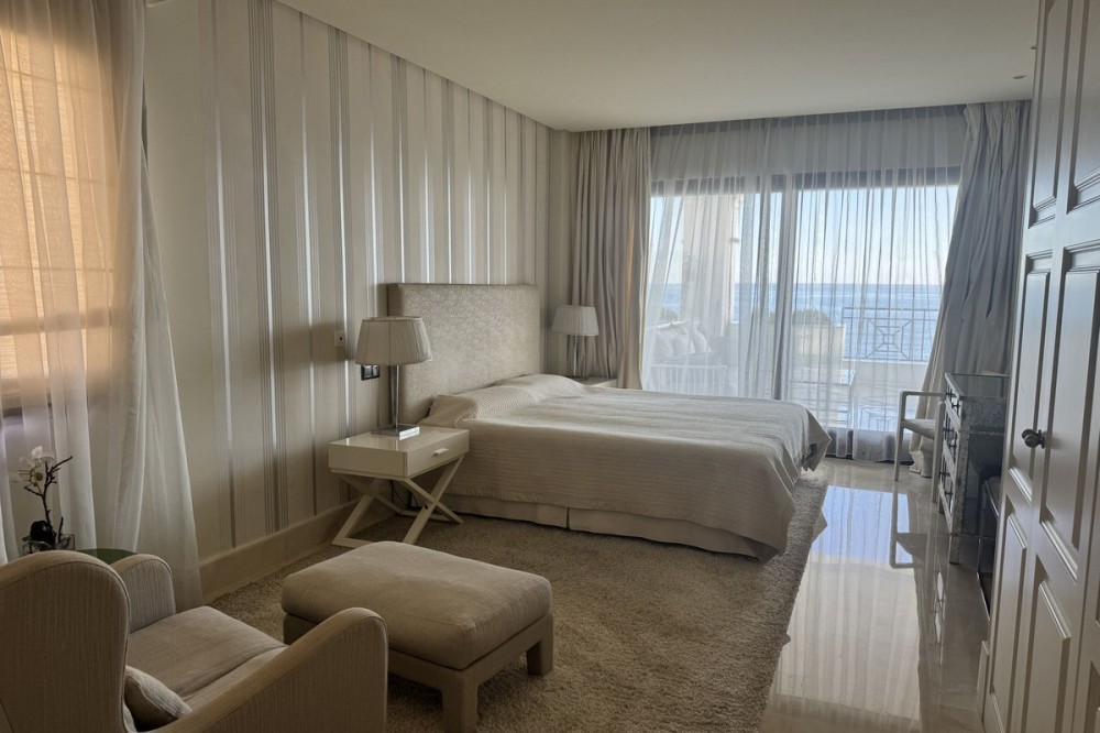- Exclusive beachfront apartment for sale in the prestigious Doncella Beach residential complex, located on the first line of the sea in Estepona, Costa del Sol. Originally built with three bedrooms and three bathrooms, the property has been thoughtfully redesigned by the owner into a spacious two-bedroom, two-bathroom apartment to create a more open and comfortable living area. The apartment features: • A large master bedroom with an en-suite spacious bathroom and walk-in wardrobe • Bright and generous living and dining areas • A private terrace with beautiful, unobstructed sea views • Absolute beachfront location — nothing blocks the view Doncella Beach is a secure, gated residential complex offering: • 24-hour security • Outdoor heated semi-olympic swimming pool • Spa area • Gym • Sauna • Direct access to the beach A unique opportunity to own a beachfront home in one of the most desirable areas of the Costa del Sol, perfect as a permanent residence, holiday home, or investment.