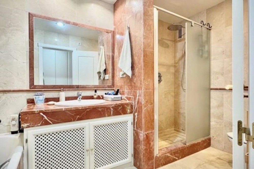 - Fantastic ground floor apartment within the renowned Hacienda del Sol complex, right on the beach in the heart of the new Golden Mile. The apartment comprises 120 square meters with 2 bedrooms and 2 bathrooms, plus a living/dining room with direct access to the fantastic terrace and a fully equipped kitchen. The property has access to the garden and swimming pool where you can enjoy a refreshing dip. A parking space and a storage room are also included in the price. The complex is gated with 24-hour security.