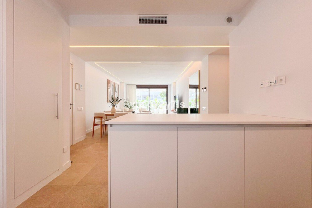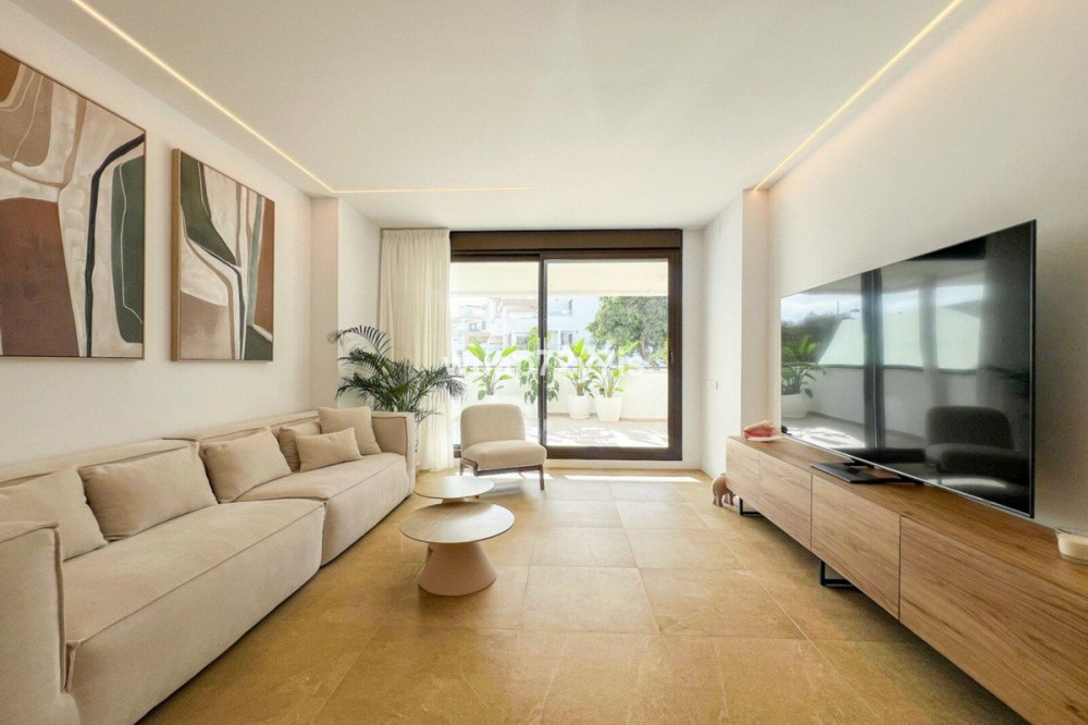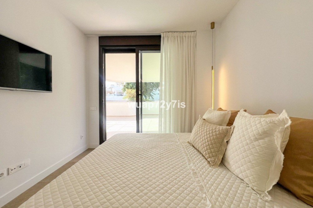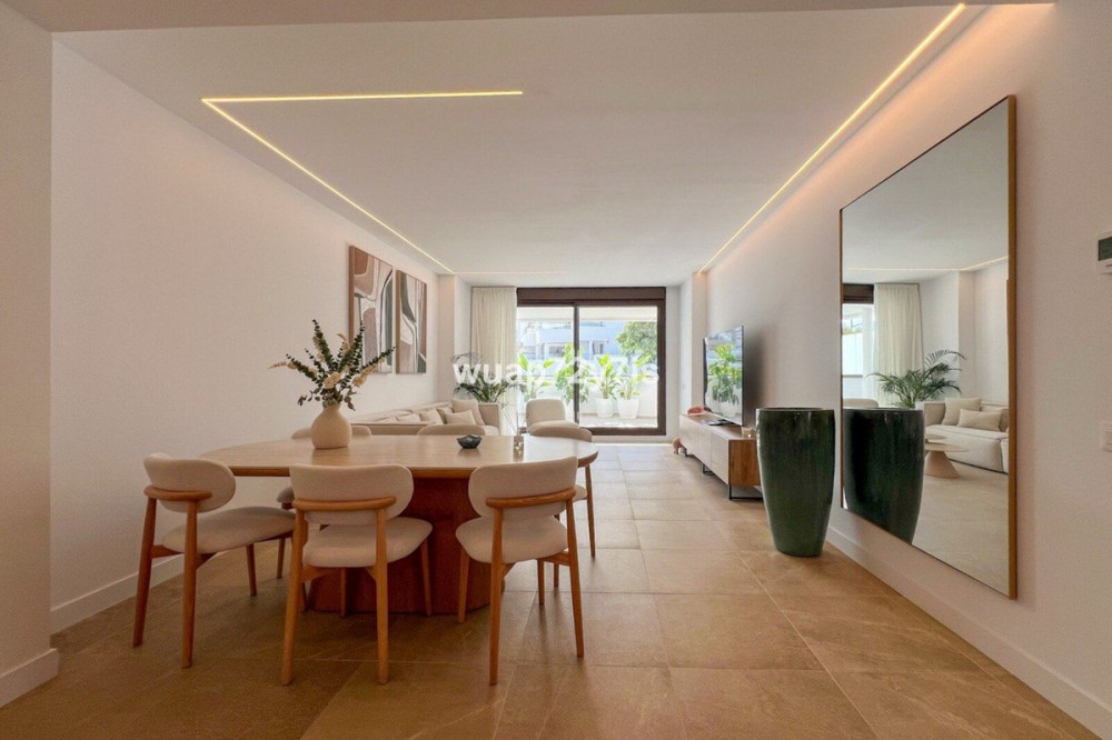- 4-Bedroom Ground Floor Apartment in the Prestigious Las Mesas Area, Estepona Stepping inside this elegant ground-floor residence, you’re welcomed by a thoughtful and spacious layout. To your right lies a fully equipped, generous kitchen featuring a stylish breakfast bar with bar stools — perfect for casual mornings or hosting friends. To the left, the interior opens into a comfortable dining area that seamlessly connects to the inviting living room. From here, large sliding doors draw you toward a spectacular 92 m² terrace — half covered for year-round comfort, half open to enjoy the Andalusian sun. It’s an ideal setting for outdoor dining with a glimpse of the sea. Moving from the living room into the quieter wing of the apartment, you’ll find four bedrooms and three bathrooms. The master bedroom is impressively spacious and comes with its own en-suite bathroom. Three of the bedrooms enjoy direct access to the terrace through floor-to-ceiling windows, filling the rooms with natural light and offering a wonderful sense of openness and fresh air. Set within a beautiful landscaped park environment, this apartment is located in the highly desirable Las Mesas district of Estepona. At the heart of the neighborhood lies the Las Mesas Sports Club and Park, offering padel courts, a well-equipped gym, and peaceful walking paths. The property sits just three minutes by car from Estepona’s Marina (Puerto Deportivo) and 5–7 minutes from the charming historic center. Also within three minutes is the Pabellón Municipal de Deportes , a full sports complex. Everyday convenience is excellent, with Mercadona and Lidl supermarkets only 2–3 minutes away. This location combines tranquility, green surroundings, and superb access to Estepona’s key attractions and amenities.