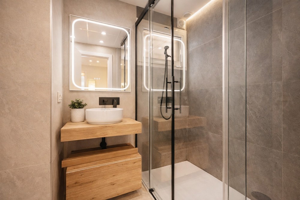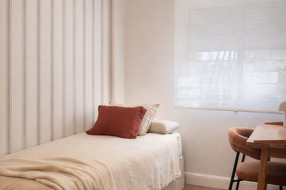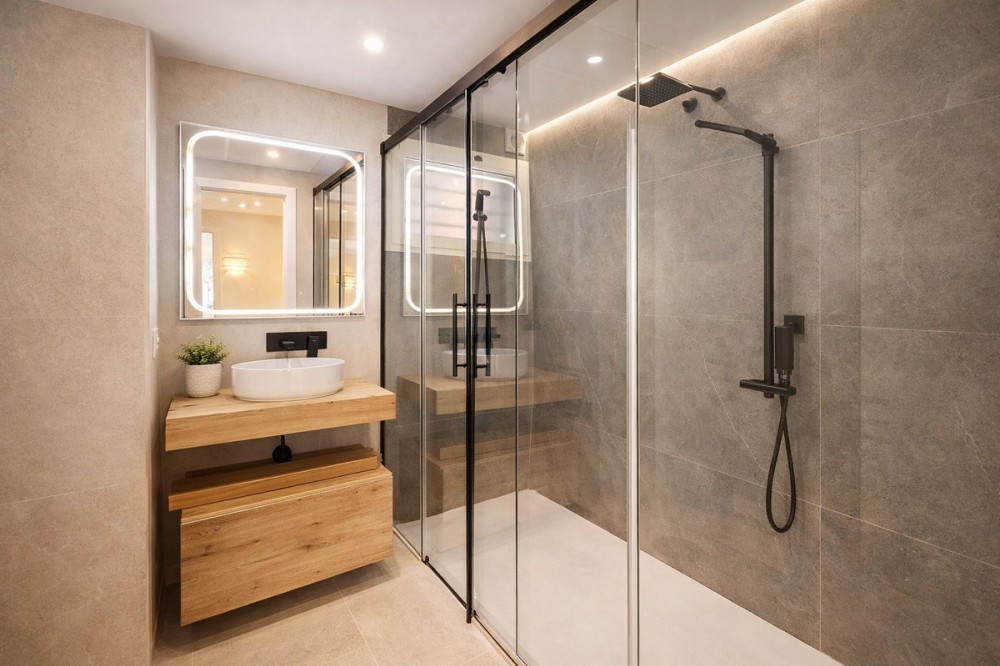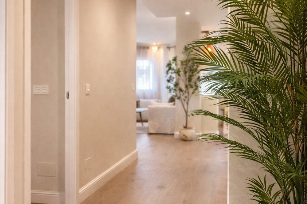 - Spectacular 120 m² apartment, recently renovated with high-quality materials and finishes. The property is delivered fully furnished and ready to move in, decorated with exclusive furniture and equipped with top-of-the-line appliances, offering a modern, functional, and comfortable style in one of Estepona’s most sought-after areas. Strategically located between the Marina and the historic center, this apartment combines proximity to the beach, restaurants, shops, schools, and all kinds of services, making it an ideal option both as a primary residence, a second home, or a high-demand investment. The interior layout includes a spacious and bright living room with direct access to a cozy private terrace of 7 m² with open views. The designer kitchen, fully equipped and with integrated laundry area, offers a practical and elegant space, connected to the terrace and open to the living room through a large peninsula. The apartment features three spacious bedrooms, all with new, lined, and illuminated built-in wardrobes, as well as ceiling fans and a powerful air conditioning system (8,000 frigories) that ensures maximum comfort throughout the year. The master bedroom has an en-suite bathroom with a modern shower and access to a balcony overlooking the interior of the complex, while the other two bedrooms—one currently used as a dressing room—share a second full bathroom. Both bathrooms stand out for their complete renovation with top-quality finishes, each featuring exterior windows that provide perfect ventilation. They include sliding glass shower screens designed to offer greater comfort and elegance. The property includes a parking space in the complex’s underground garage. Communal areas feature a swimming pool, well-maintained gardens, a children’s playground, and an elevator, offering all the amenities necessary to enjoy the Mediterranean lifestyle. This is a unique and exclusive property: a fully renovated and furnished apartment, with brand-new furniture, high efficiency, and in a privileged location, just a 1-minute walk from the marina and the beach, and 5 minutes from Estepona’s old town.