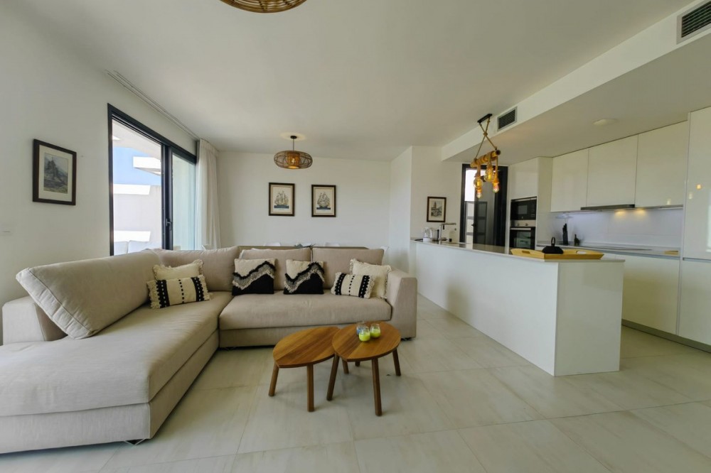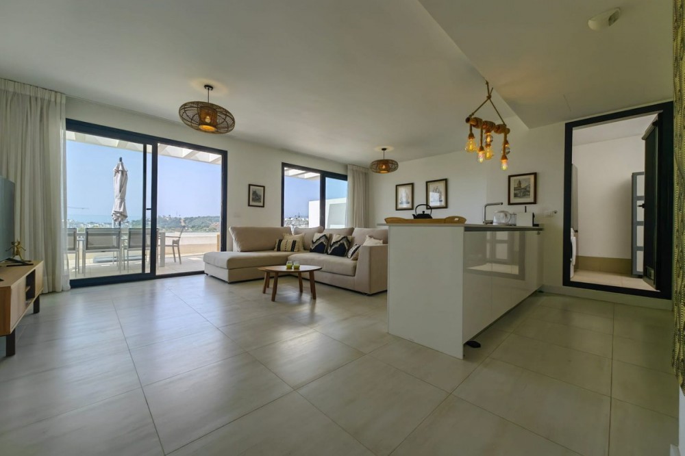 - Stunning Duplex Penthouse in Las Olas | La Gaspara, Estepona Welcome to this exceptional duplex penthouse located in the exclusive Las Olas development, set within the highly desirable enclave of La Gaspara, Estepona. Just a short walk from the beach and surrounded by premium amenities, this residence perfectly combines contemporary luxury, relaxed coastal living, and excellent investment potential. Set within an intimate, boutique community of just 48 modern apartments, this south-facing penthouse is a rare find. It enjoys partial sea views along with open outlooks over beautifully maintained tropical gardens and a prestigious international football training ground, offering a unique blend of privacy, elegance, and uninterrupted vistas. The main living level features a stylish open-plan kitchen, seamlessly connected to the lounge and dining areas. Floor-to-ceiling sliding glass doors flood the space with natural light and open onto a generous, semi-covered terrace—ideal for indoor-outdoor living, whether relaxing, entertaining guests, or enjoying alfresco dining day or night. A discreet, partially covered utility area provides practical laundry and storage space. This level also comprises a guest toilet, three bedrooms, and two bathrooms. The elegant principal suite includes an en-suite bathroom and direct access to the main terrace, while one of the guest bedrooms benefits from its own private balcony overlooking the landscaped gardens and saltwater swimming pool. The upper level reveals a true highlight of the property: a private rooftop solarium exceeding 80 m². With panoramic views across the surrounding landscape and towards the Mediterranean, this expansive space offers endless possibilities—perfect for creating a luxurious chill-out area with an outdoor kitchen, BBQ, sun loungers, and an entertainment zone. Las Olas offers a peaceful yet connected lifestyle, just minutes from Estepona’s charming old town, vibrant marina, and an excellent selection of restaurants, shops, and leisure facilities. The renowned destinations of Marbella, Puerto Banús, and Sotogrande are easily reached, along with numerous championship golf courses, sports clubs, and international schools. Whether as a permanent residence, a stylish holiday retreat, or a high-yield rental investment, this outstanding penthouse represents a rare opportunity in one of the Costa del Sol’s most sought-after locations.