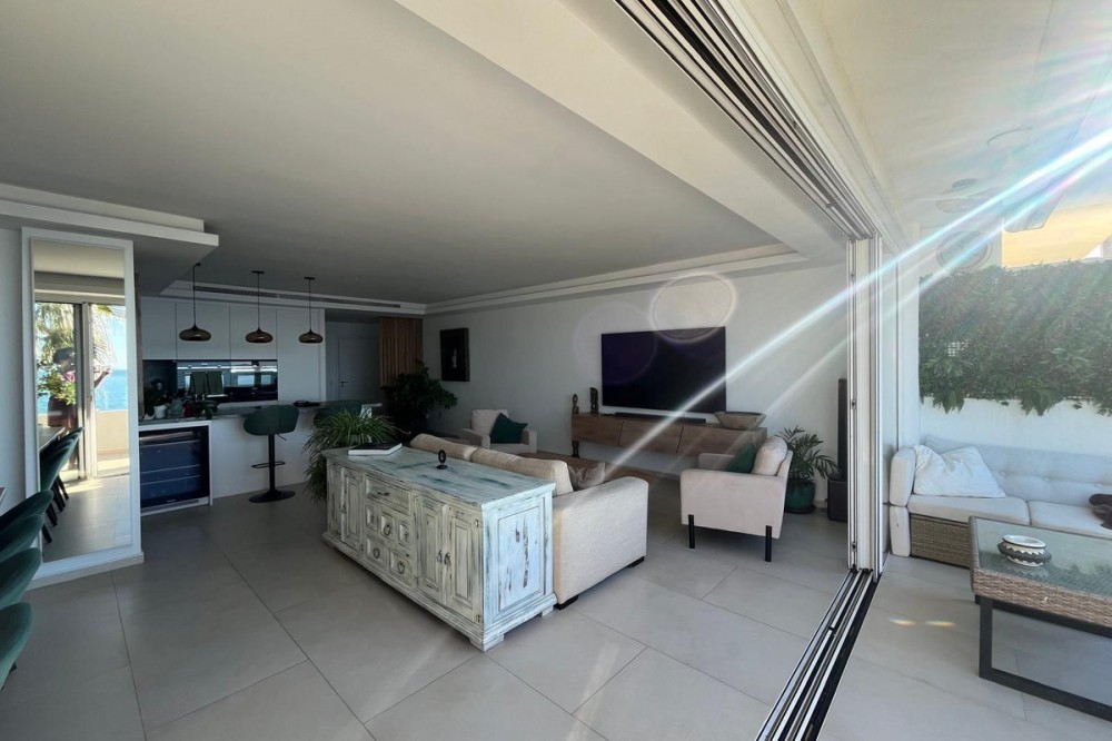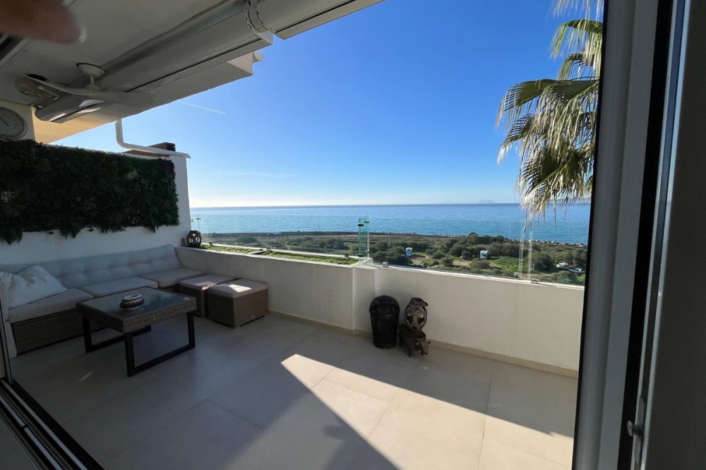 - Exclusive Fully Refurbished Beachfront Apartment in Prime Estepona Location – Marina Bay Discover this one-of-a-kind, fully refurbished apartment on the frontline beach in Estepona's most prestigious area, within the secure gated Marina Bay urbanisation – a well-established community of residential apartments nestled between the Port of Estepona and the town centre. Enjoy an unbeatable position, mere steps from the golden sands of El Cristo Beach (just 100 metres away) – a sheltered cove ideal for families – and the vibrant Estepona Marina (also nearby), with its array of restaurants, bars, and Sunday craft market. A short 15-20 minute stroll along the scenic Paseo Marítimo takes you to the charming town centre, filled with boutique shops, tapas bars, and supermarkets, while the expansive Playa de la Rada is within easy reach. Perfectly connected, it's only 20 minutes by car to glamorous Marbella and Puerto Banús, 30 minutes to Gibraltar, and 55 minutes to Málaga Airport. Spanning 100 m², this move-in-ready home on the third floor (with lift) features two spacious bedrooms, two modern bathrooms, a generous terrace for al fresco relaxation, built-in wardrobes, air conditioning, and a desirable south-facing orientation for abundant natural light and warmth. The property includes a private garage and storage room – a rare luxury in such a privileged seafront setting – plus access to the community's lush landscaped gardens, shared swimming pool, and well-maintained facilities. With 24/7 security and a family-friendly atmosphere, Marina Bay offers a serene, exclusive lifestyle in the "Garden of the Costa del Sol." Holding a tourist license, it's an ideal primary residence, holiday retreat, or savvy investment with strong rental potential. Priced at €845,000 – a premium beachfront opportunity in sought-after Estepona.