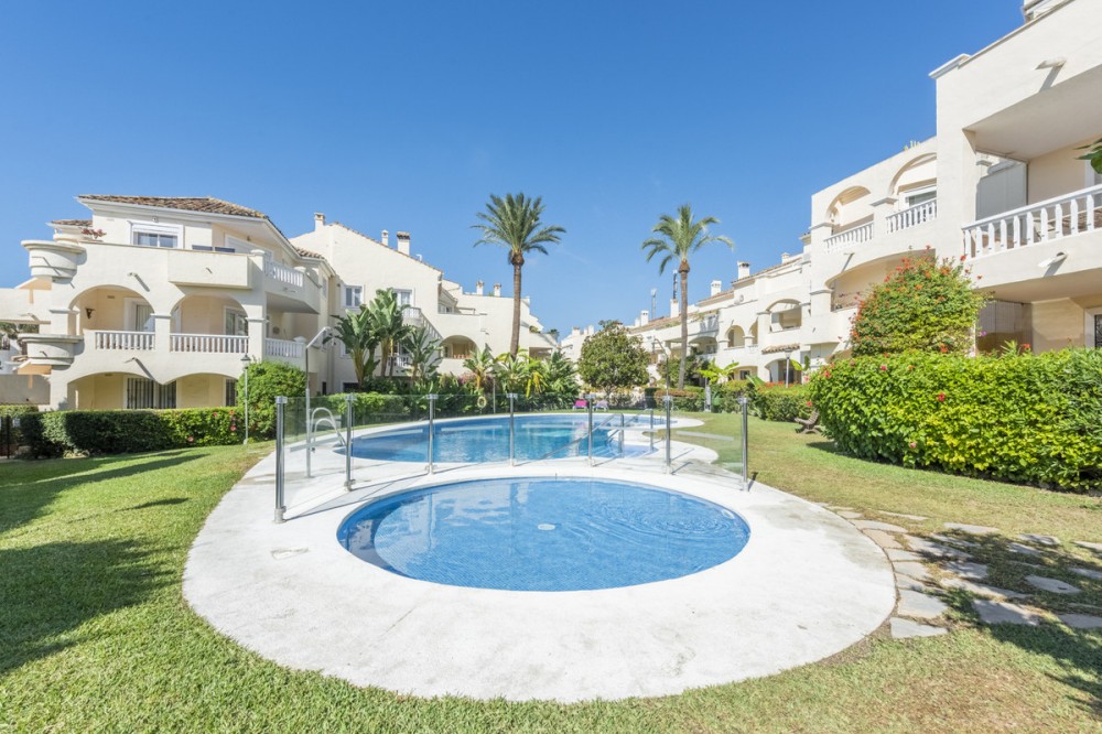 - Spacious 3-Bedroom Corner Apartment with Multiple Terraces in El Paraíso, Estepona Located in a highly sought-after gated community in El Paraíso, this well-planned corner apartment offers space, natural light, and a rare combination of three private terraces—perfect for enjoying the Andalusian sun throughout the day. Bright Living Room and West-Facing Terrace The apartment welcomes you with a large, bright living and dining area featuring a cozy fireplace and generous space for both lounging and entertaining. From the living room, you step directly out onto a west-facing terrace with relaxing views over the beautifully maintained communal gardens—ideal for afternoon sun and warm evenings outdoors. Three Bedrooms and Excellent Layout To the left side of the property, you’ll find three spacious bedrooms. The master bedroom includes a large en-suite bathroom and direct access to a private terrace. The two additional bedrooms are also well-sized, both opening onto a large shared east-facing terrace—perfect for morning sun. These rooms share a nearby family bathroom. All bedrooms come equipped with full-length fitted wardrobes, and the apartment includes both high-speed internet and an alarm system already installed. Private Garage and Storage Included The apartment is sold with a private underground parking space and a generously sized storage room—ideal for bikes, golf clubs, or seasonal items. The property is in good overall condition and ready to move into, with potential to personalize or renovate further if desired. Well-Maintained Urbanization with Heated Pool The community is fully gated, secure, and beautifully maintained. Residents enjoy access to expansive green areas, a heated communal pool, and a separate children’s pool. The complex is under 24/7 camera surveillance. Between 2022 and 2024, solar panels were installed on the rooftops to reduce electricity costs and improve energy efficiency across common areas. There are no restrictions on short-term rentals, making this property a great option for investment as well. Prime Location with Walking Distance to Everything Located just a 10-minute walk from the beach, the apartment is also within short walking distance of numerous local amenities including supermarkets, cafés, restaurants, bars, butchers, a gym, hairdresser, bank, pharmacy, and more. There are excellent transport links with nearby bus and taxi stops, making it easy to get around without a car. Close to Golf and Costa del Sol Hotspots Golf enthusiasts will appreciate the proximity to several top-rated courses. For dining, shopping, and nightlife, Puerto Banús, San Pedro de Alcántara, and Estepona town are all just a 10–15 minute drive away. A Comfortable and Flexible Home in an Ideal Setting Whether you’re looking for a full-time residence, a holiday home with great rental potential, or a smart investment, this charming apartment in El Paraíso offers a perfect blend of space, location, and lifestyle. Contact us today to book your private viewing.