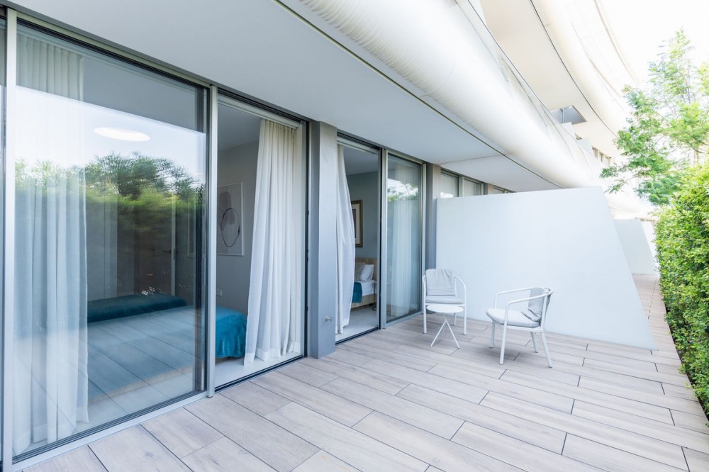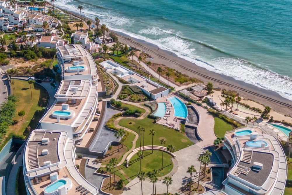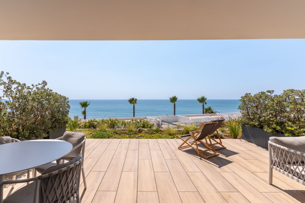 • The Edge is an iconic, award-winning beachfront development, distinguished with First Prize for Best Architecture Multiple Property at the prestigious European Property Awards. This landmark project sets a new standard for contemporary coastal living, combining architectural excellence with an exceptional lifestyle offering. Residents benefit from 24-hour security and concierge services, ensuring privacy and peace of mind. The development features outstanding amenities, including an outdoor infinity pool with panoramic views of the Mediterranean Sea and Gibraltar, an indoor heated swimming pool, spa facilities with sauna and steam room, a fully equipped gymnasium, padel court, and meticulously landscaped gardens that harmoniously integrate with the natural beachfront surroundings. This exceptional apartment is situated in Block 5, widely regarded as offering some of the finest unobstructed sea views within the development. Upon entering, the property immediately impresses with its seamless connection to the sea, creating a sense of space, light, and exclusivity. The residence is elegantly furnished and finished to the highest standards, with meticulous attention to detail throughout. The layout comprises a spacious master suite with en-suite bathroom, a guest bedroom, and an additional bathroom. Both bedrooms enjoy direct access to a private rear terrace. The state-of-the-art kitchen is fully fitted with premium Gaggenau appliances, including a double refrigerator and freezer, and is beautifully integrated into the bright, open-plan living area. Floor-to-ceiling glazing allows the interior spaces to flow effortlessly onto the expansive terrace and private-use garden, offering an exceptional indoor-outdoor living experience. The property includes one underground parking space and a private storage room. Ideally positioned directly on the beachfront, the development also offers convenient access to nearby restaurants, boutiques, and everyday amenities. Estepona Marina and the town centre are only a short drive away, while Málaga International Airport is approximately one hour by car. For those seeking a contemporary beachfront residence in one of the Costa del Sol’s most prestigious developments, this property represents a rare opportunity.