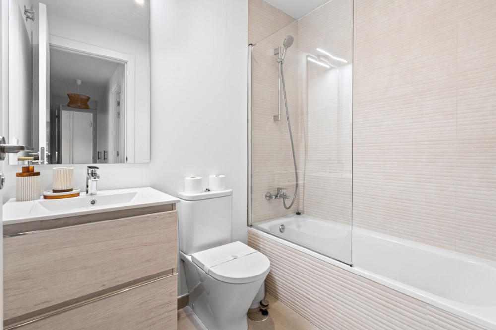 - Discover contemporary Mediterranean living in this brand new 3-bedroom, 2-bathroom apartment, ideally located in the heart of the New Golden Mile between Marbella and Estepona. Delivered in 2025, this beautifully designed west-facing home enjoys spectacular sunsets along with stunning sea and mountain views. The spacious terrace is the perfect place to unwind while taking in the panoramic scenery. Inside, the apartment features a modern open-plan kitchen seamlessly integrated with the bright living and dining area, creating an elegant and functional space ideal for both relaxing and entertaining. The master bedroom benefits from a private en-suite bathroom, while two additional bedrooms share a second bathroom. The property is part of a well-maintained community offering a communal swimming pool and gym. Just a 5-minute walk away, residents also have access to an exclusive clubhouse with premium facilities including a fully equipped gym, indoor pool, spa, and restaurant — delivering a true resort-style lifestyle. Located only 1.2 km from the beach and perfectly positioned between Marbella and Estepona, this apartment offers the perfect combination of tranquility and accessibility. Importantly, the property comes with a valid rental license, making it an excellent investment opportunity with strong short- or long-term rental potential.