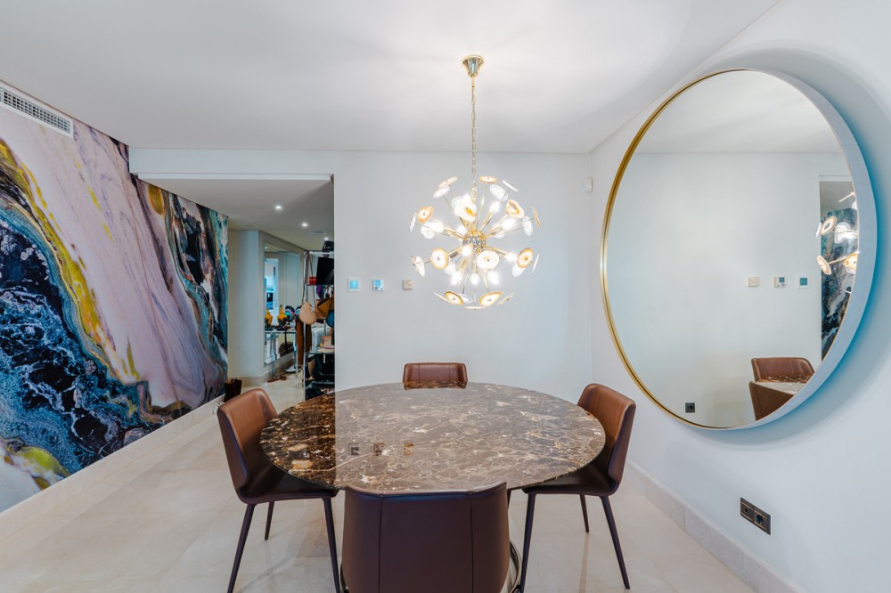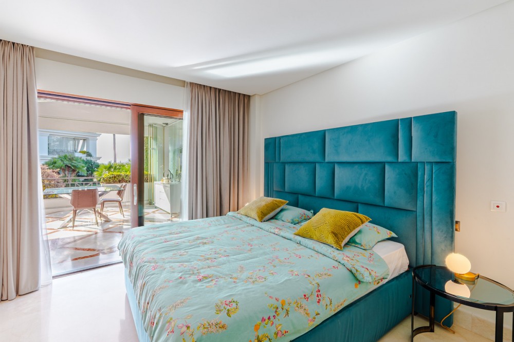 - Located within the prestigious gated beachfront development of Doncella Beach in the prime residential area of Seghers, Estepona, this elegant ground floor apartment offers refined Mediterranean living in one of the most exclusive frontline communities on the Costa del Sol. The property comprises 224 m² built and features generous interior proportions enhanced by abundant natural light. Large sliding glass doors create a seamless connection between the interior living spaces and the outdoor terrace and private garden, allowing for harmonious indoor–outdoor living throughout the year. The residence offers three spacious bedrooms and three bathrooms, including a well-appointed master suite that provides privacy and comfort. The open-plan living and dining area is bright and welcoming, complemented by a fully equipped contemporary kitchen. High-quality finishes are present throughout the property, including marble flooring, air conditioning, and carefully selected materials that reflect understated elegance. From the private terrace and garden, the apartment enjoys open views across the beautifully maintained tropical gardens and communal swimming pool, as well as partial views of the Mediterranean Sea. The property also includes an underground parking space and a private storage room. Doncella Beach is a secure frontline beach community offering direct access to the promenade and the sea. Residents benefit from 24-hour security and an exceptional range of resort-style amenities, including outdoor and indoor heated swimming pools, a fully equipped gym, spa facilities, and landscaped tropical gardens. Built around 2010 to high standards, the development is recognised for its exclusivity, privacy and enduring value. The location in Seghers is considered one of the most desirable residential areas of Estepona. The property is within walking distance of the marina, the charming old town, restaurants, beach clubs and everyday amenities. Excellent connectivity allows easy access to Marbella within approximately twenty minutes, Sotogrande within thirty minutes and Málaga International Airport within forty-five minutes. This residence represents a rare opportunity to acquire a spacious beachfront home in one of Estepona’s most established and sought-after luxury communities.