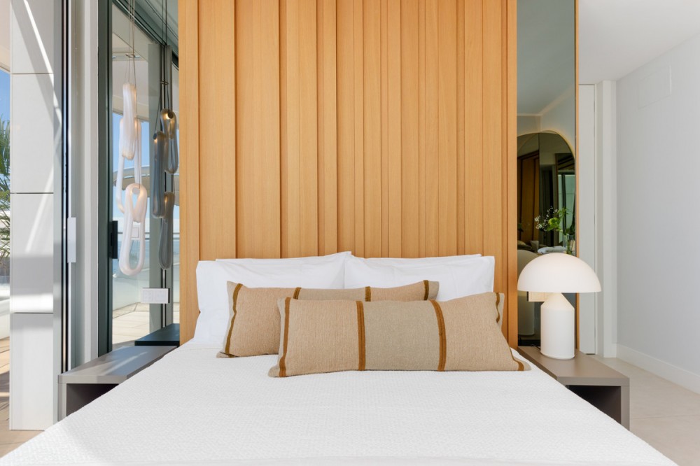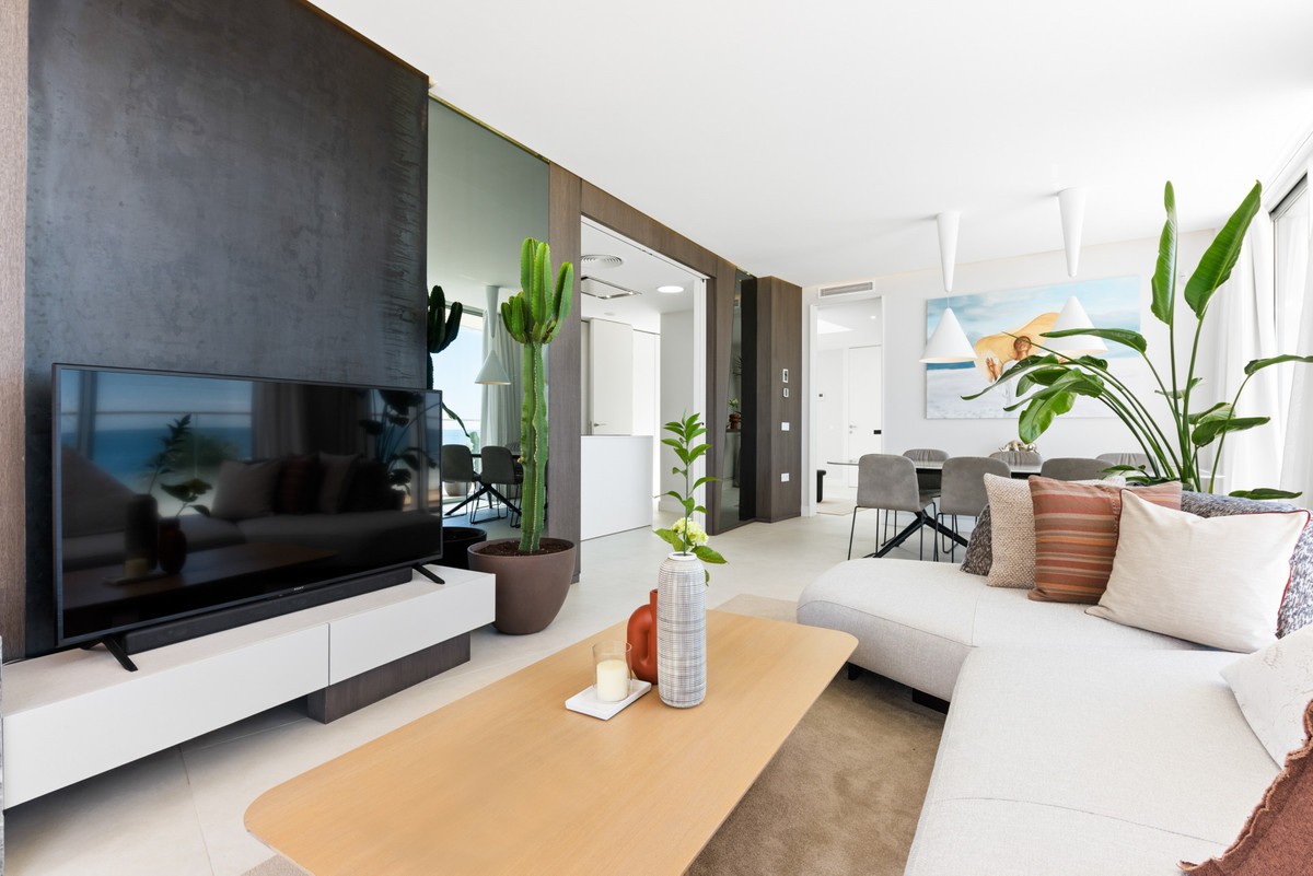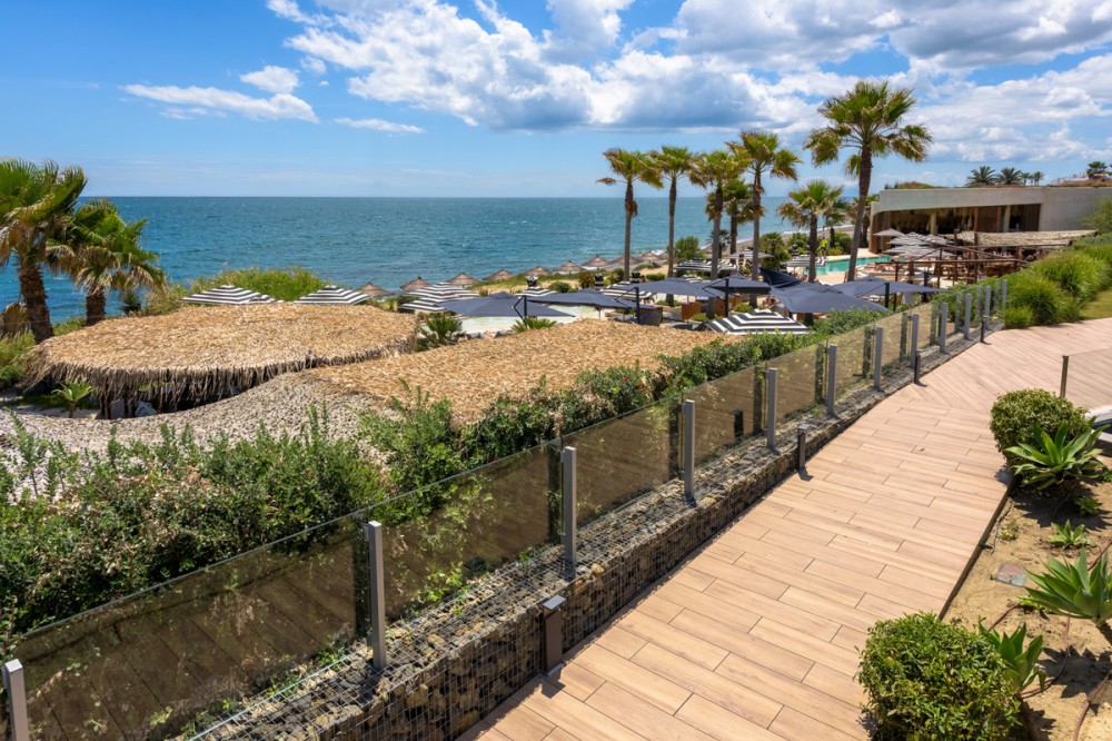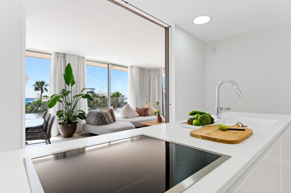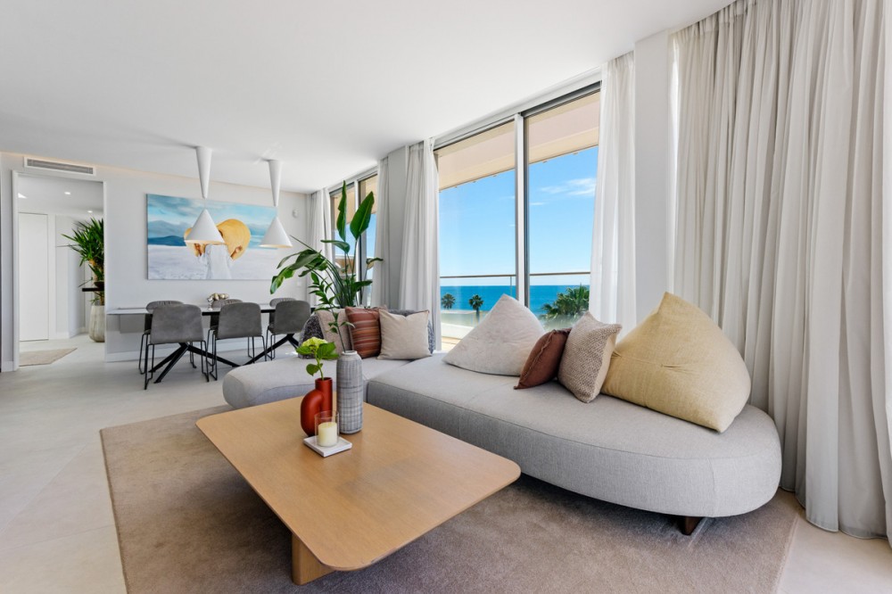 - A three-bedroom penthouse located in one of Estepona’s most prestigious frontline beach developments, offering uninterrupted Mediterranean views and contemporary coastal living. The apartment is defined by expansive terraces designed for both relaxation and entertaining, featuring a private plunge pool and open sea views that extend along the coastline. Floor-to-ceiling glazing floods the interior with natural light and creates a seamless connection between indoor and outdoor spaces. The open-plan kitchen is fully fitted with Gaggenau appliances, combining minimalist design with professional-grade performance. Living and dining areas are generously proportioned and oriented to maximise the outlook. Accommodation comprises three bedrooms, including a principal suite with direct terrace access and sea views. Bathrooms are finished to a high standard, complementing the clean, modern aesthetic throughout. Additional features include underfloor heating, air conditioning, multiple parking spaces, private plunge pool, full spa facilities on site, outdoor and indoor swimming pools, and a superlative frontline beach location. A rare opportunity to acquire a frontline penthouse in a landmark modern development, combining privacy, lifestyle amenities, and exceptional coastal views—ideal as a high-end second home or long-term investment.