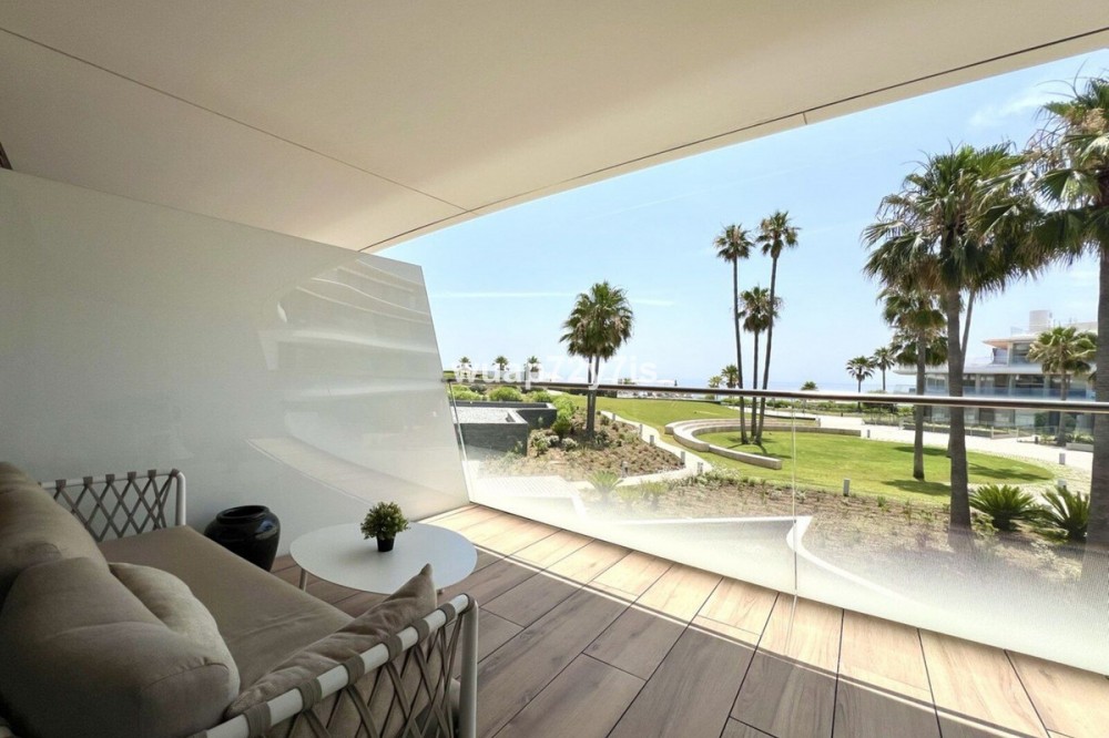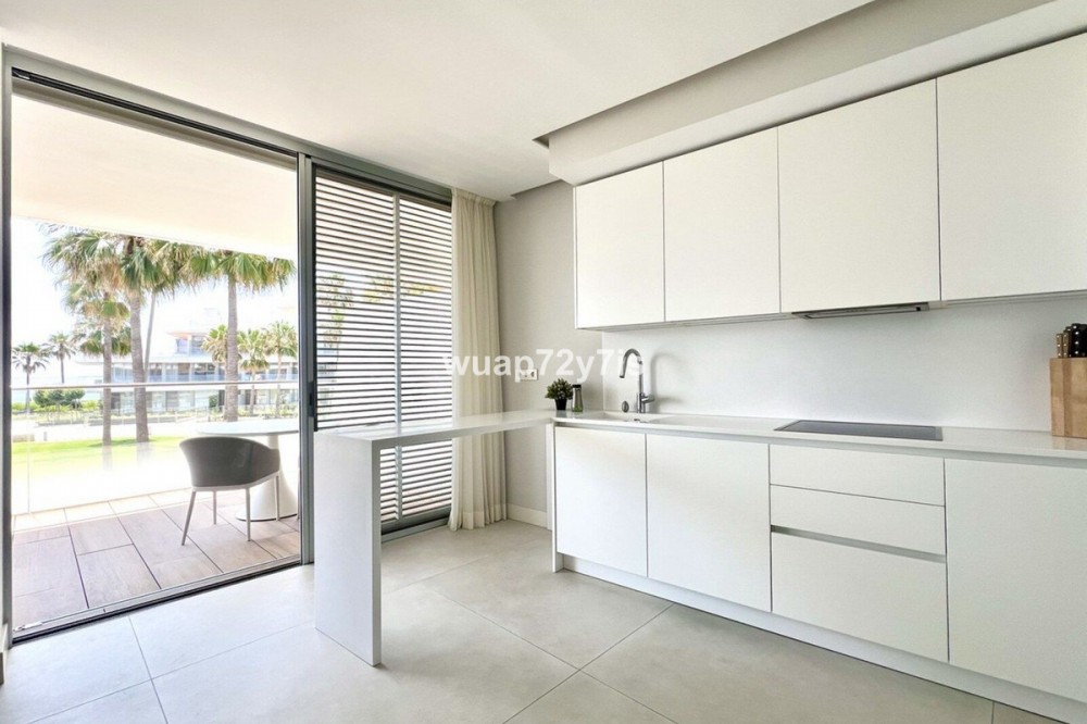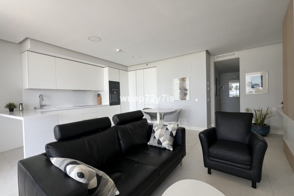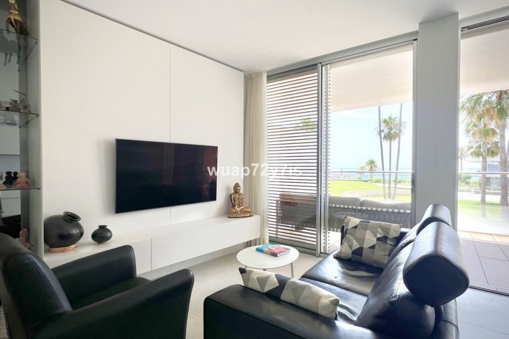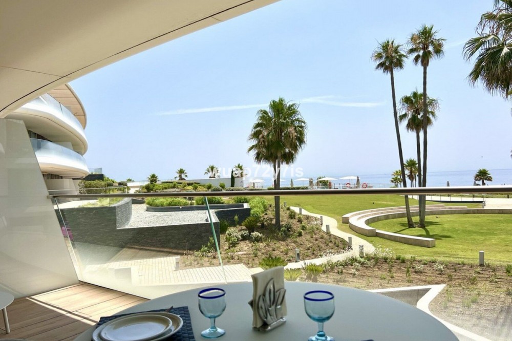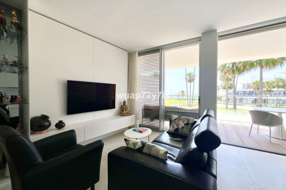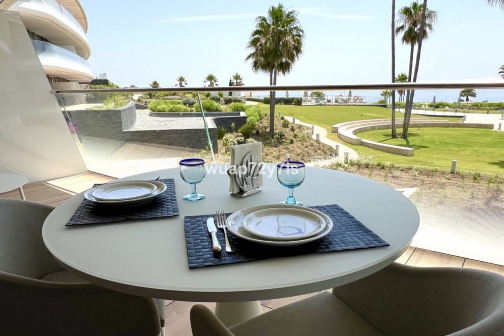 - Located in the prestigious The Edge development, on the seafront of Estepona's exclusive New Golden Mile, this elegant flat is part of one of the most modern and sought-after residential complexes on the Costa del Sol. The surroundings offer privacy, contemporary architecture and direct access to the beach, just a few minutes from the centre of Estepona and with excellent connections to Marbella and Puerto Banús, making it an ideal location for both a permanent residence and a second home by the sea. This well-maintained and bright 93 m² flat stands out for its functional layout, elegance and excellent condition. Upon entering the property, a hallway leads to the private area, where the bedrooms are located, designed to offer comfort and tranquillity. The property has two full bathrooms with modern finishes and quality materials. The heart of the flat is a spacious living room with an integrated kitchen, creating a contemporary, sophisticated and welcoming atmosphere. This room leads to the terrace, which offers fantastic sea views, making it the perfect space to relax and enjoy the Mediterranean lifestyle. One of the great added values of this property is that it has a tourist licence, making it an excellent opportunity as a primary residence, second home or high-yield investment. The property includes a parking space, storage room and bicycle storage area. The development offers high-end facilities such as a spa, fully equipped gym, manicured gardens, 24-hour security, concierge service and direct access to the beach, guaranteeing an exclusive residential experience.
