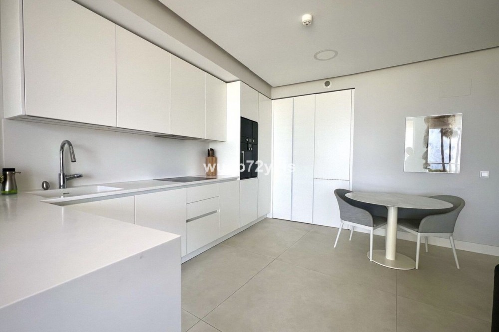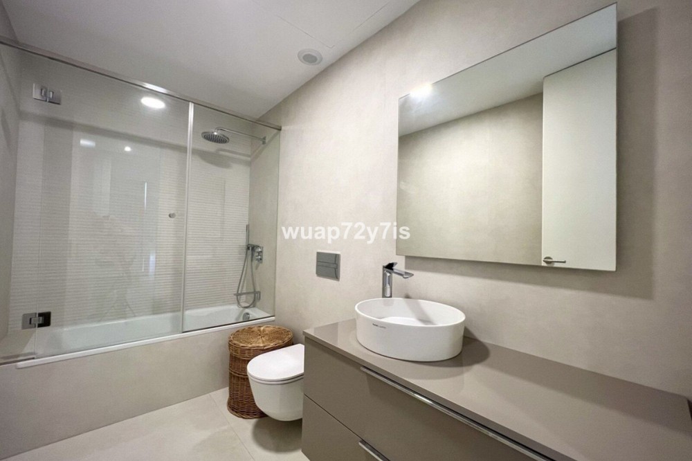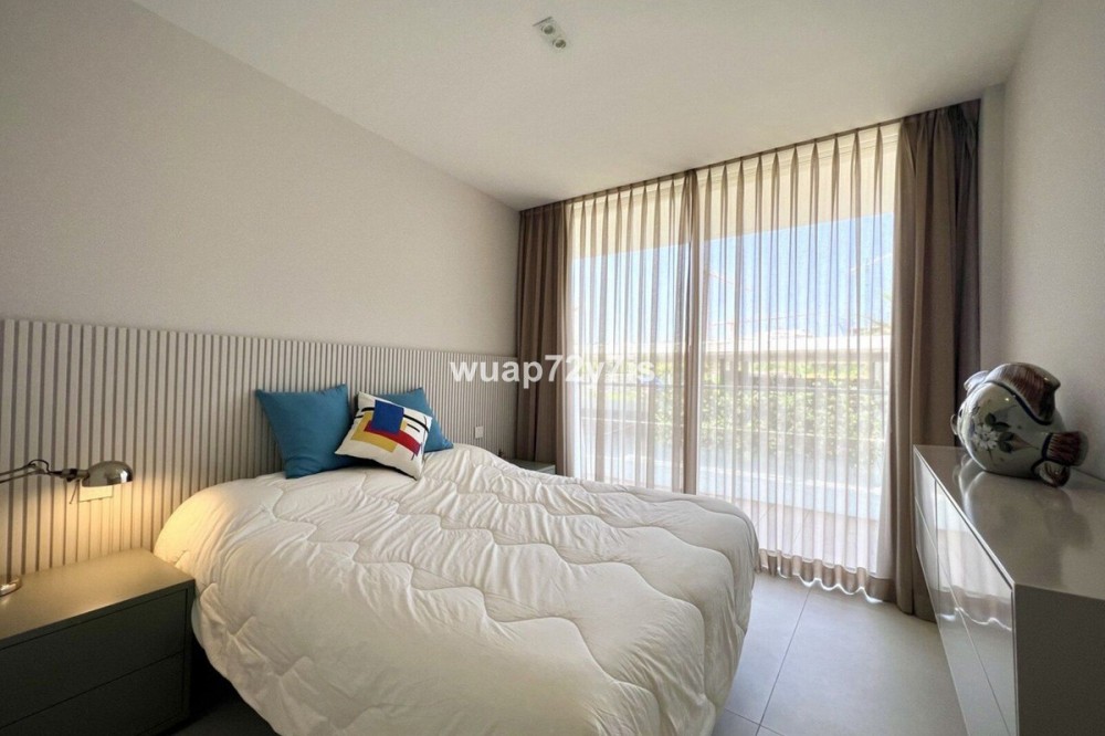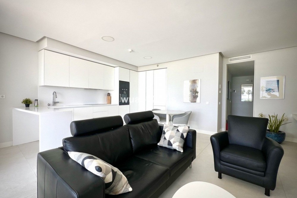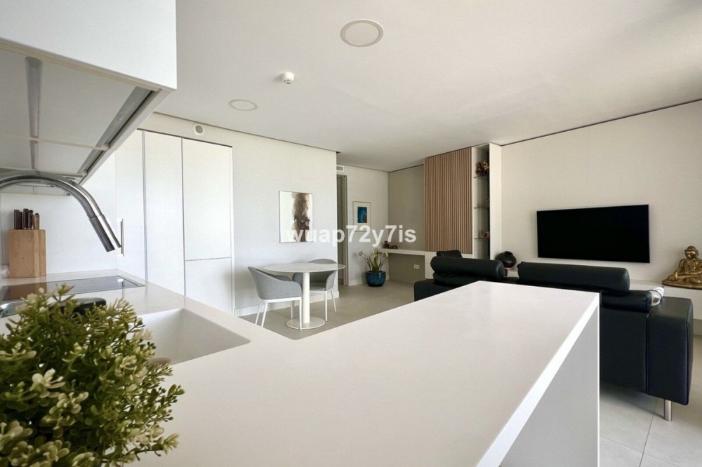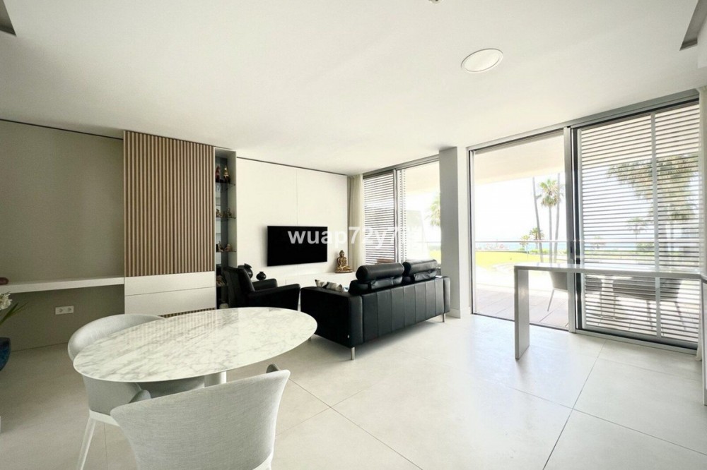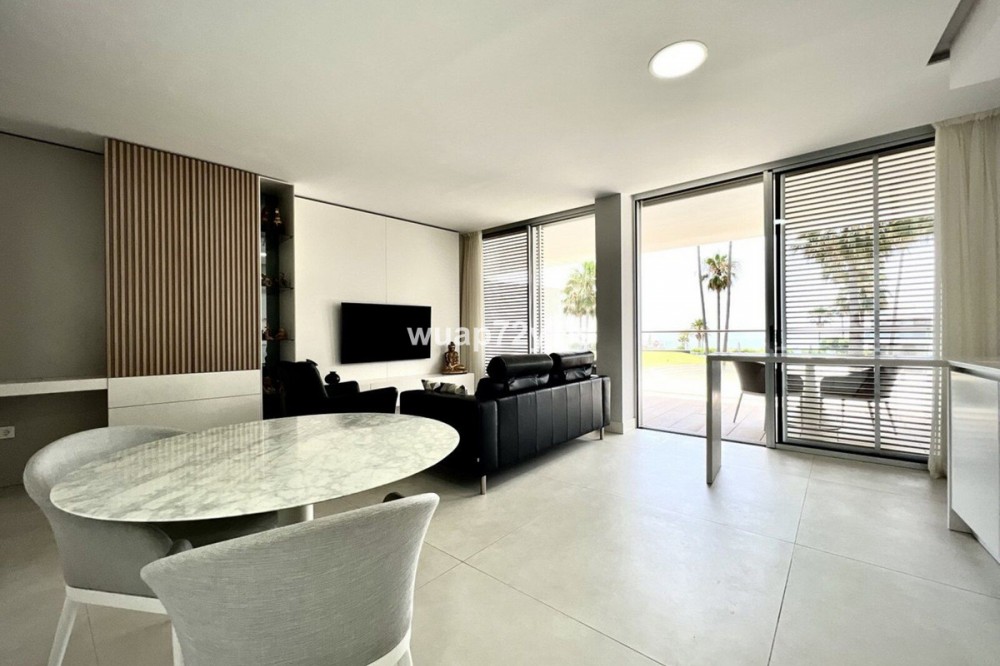 - Located in the prestigious The Edge development, on the seafront of Estepona's exclusive New Golden Mile, this elegant flat is part of one of the most modern and sought-after residential complexes on the Costa del Sol. The surroundings offer privacy, contemporary architecture and direct access to the beach, just a few minutes from the centre of Estepona and with excellent connections to Marbella and Puerto Banús, making it an ideal location for both a permanent residence and a second home by the sea. This well-maintained and bright 93 m² flat stands out for its functional layout, elegance and excellent condition. Upon entering the property, a hallway leads to the private area, where the bedrooms are located, designed to offer comfort and tranquillity. The property has two full bathrooms with modern finishes and quality materials. The heart of the flat is a spacious living room with an integrated kitchen, creating a contemporary, sophisticated and welcoming atmosphere. This room leads to the terrace, which offers fantastic sea views, making it the perfect space to relax and enjoy the Mediterranean lifestyle. One of the great added values of this property is that it has a tourist licence, making it an excellent opportunity as a primary residence, second home or high-yield investment. The property includes a parking space, storage room and bicycle storage area. The development offers high-end facilities such as a spa, fully equipped gym, manicured gardens, 24-hour security, concierge service and direct access to the beach, guaranteeing an exclusive residential experience.