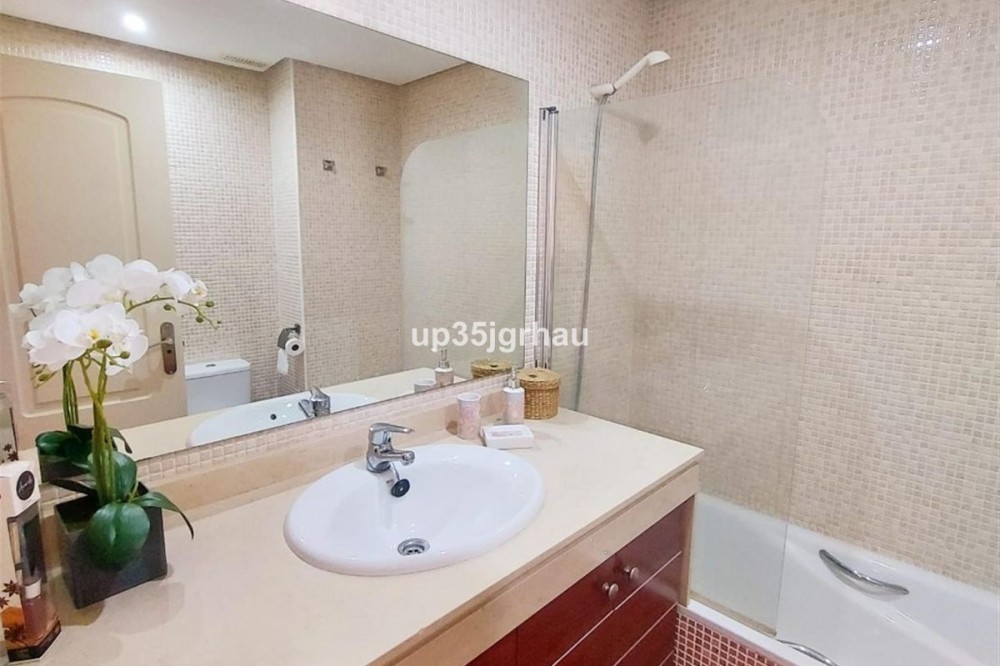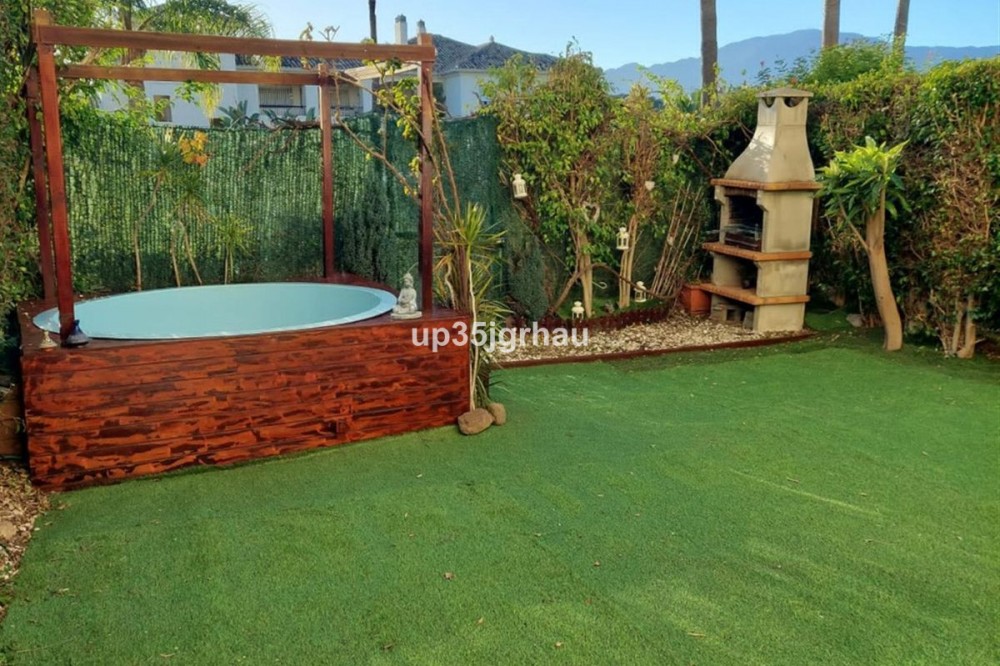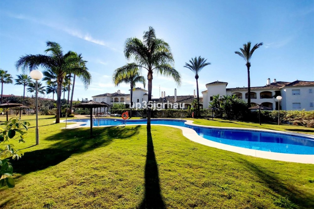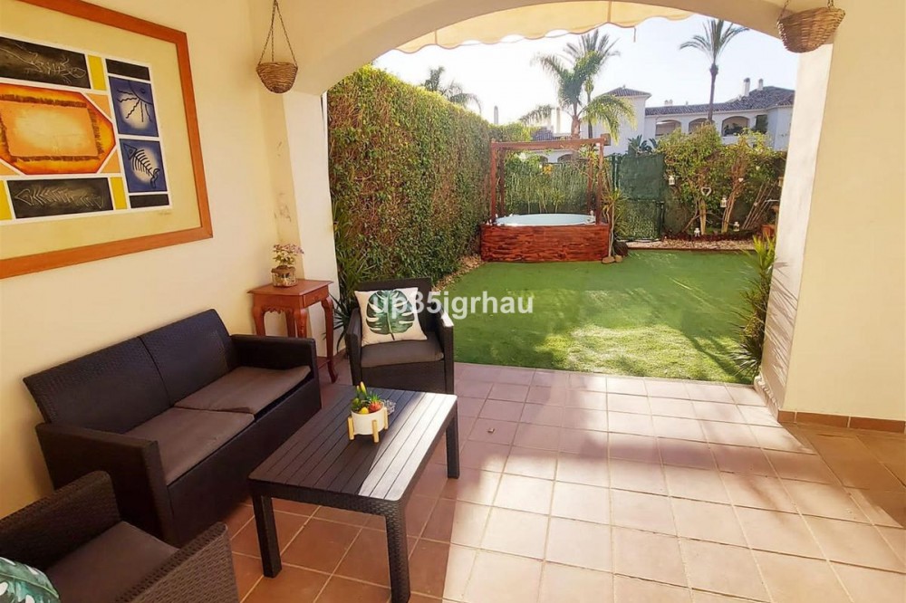 - Fantastic ground floor apartment with private garden. It has 2 large bedrooms with fitted wardrobes, 2 full bathrooms, equipped kitchen and laundry room, large private covered terrace, 70m2 private garden with mini pool and barbecue. It has a large garage and storage room accessible by elevator and stairs. Access for the disabled or reduced mobility. Garden with private access to the community pool. Gated community with swimming pools, paddle tennis courts, and tropical gardens. In the area there are grocery stores, restaurants, cafes and a bus stop 200 meters away. Between Estepona and Marbella, just 5 minutes from the beach and coastal path. Great housing or investment opportunity since it has a vacation rental license, with great profitability. Ground Floor Apartment, Estepona, Costa del Sol. 2 Bedrooms, 2 Bathrooms, Built 100 m², Terrace 70 m², Garden/Plot 50 m². Setting : Close To Sea, Close To Town, Urbanisation. Orientation : South, South West. Condition : Excellent. Pool : Communal, Private, Children`s Pool. Climate Control : Air Conditioning. Views : Garden, Pool. Features : Covered Terrace, Lift, Fitted Wardrobes, Near Transport, Private Terrace, Satellite TV, WiFi, Paddle Tennis, Storage Room, Ensuite Bathroom, Access for people with reduced mobility, Marble Flooring, Barbeque, Double Glazing, Near Church, Fiber Optic, Handicap access. Furniture : Fully Furnished. Kitchen : Fully Fitted. Garden : Communal, Private, Landscaped, Easy Maintenance. Security : Gated Complex, Entry Phone. Parking : Underground, Garage, Private. Utilities : Electricity, Drinkable Water, Telephone. Category : Golf, Holiday Homes, Investment, Luxury.