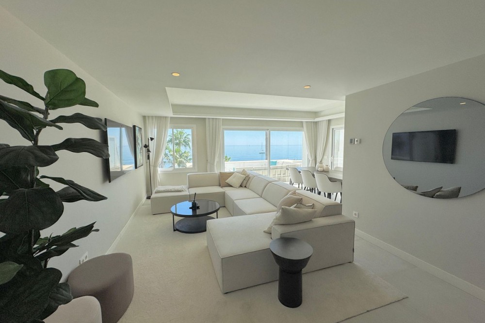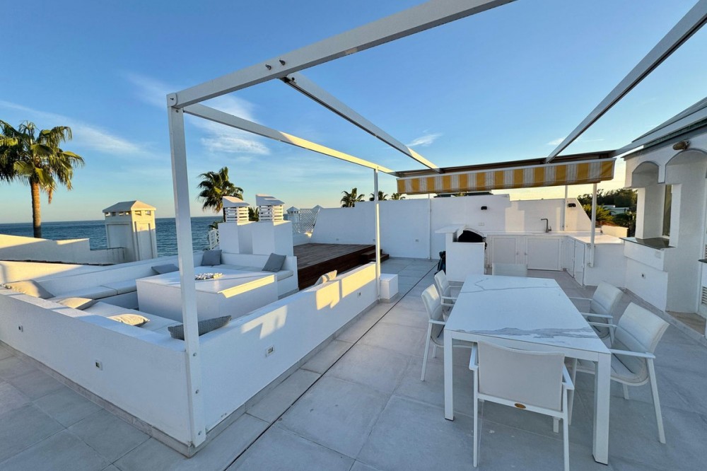 • Beachfront Duplex Penthouse in Dominion Beach This exclusive frontline duplex penthouse is located within the prestigious Dominion Beach development, one of the most sought-after residential areas in Estepona. Positioned just 50 metres from the sea, the apartment offers a unique setting with immediate proximity to the beach and an exceptional Mediterranean lifestyle. The property features 143 sqm built, distributed into four spacious bedrooms and three bathrooms, providing a comfortable and functional layout ideal for permanent living, a holiday residence or a high-potential investment. Its south-facing orientation ensures abundant natural light throughout the day. A key highlight of the home is its outstanding outdoor space. It offers two private terraces of approximately 35 sqm and 110 sqm, perfect for outdoor dining, entertaining or simply enjoying the breathtaking panoramic sea views. The apartment has been renovated and includes air conditioning, fitted wardrobes, a storage room and lift access. The gated community benefits from a communal swimming pool and a well-maintained beachfront environment. This is a rare opportunity to acquire a spacious and bright property with open sea views in a prime Costa del Sol location.